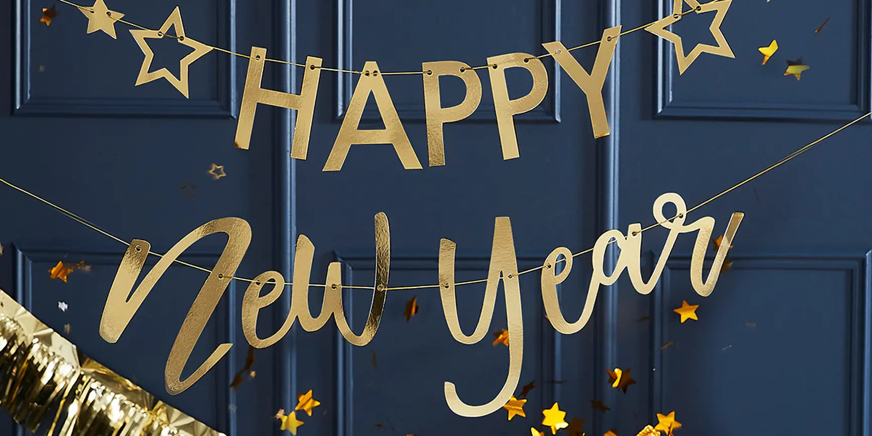 Once you’ve decided on your colour scheme, you’ll want to pick out a few hanging decorations to match. Popular choices include bunting, tassel garlands and iridescent fringe curtains. Here are a few of our personal favourites that we think are perfect for a New Year’s Eve celebration!