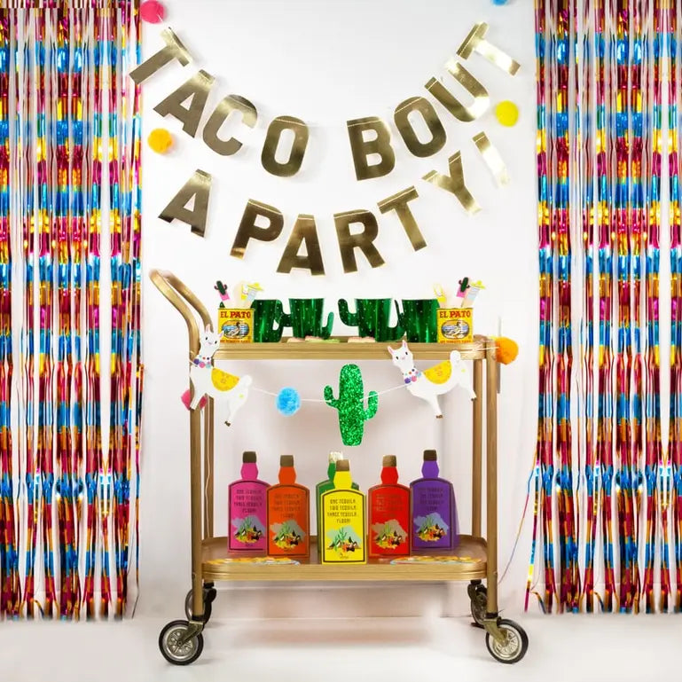 No party is complete without having a few decorations to fill the room and just like the tableware, we’ve gone for bright shades. Don’t worry too much about sticking to one colour, the more colours involved the better your Mexicana theme will look. Let’s start with the brightest of the decorations, our multi-coloured fringe curtain. It’s the perfect way to add a pop of colour to your party and not only will this look gorgeous hanging up, but it also doubles as a photo booth backdrop too – win-win.Pair these alongside our range of Mexican-style buntings for a true fiesta theme, choose from ‘Taco bout a party’ or ‘Fiesta Like There’s No Manana’ or both if you fancy going all out! Alternatively, if you’re keeping it simple or throwing a spontaneous summer party and don’t have much time, you could hang up our a few of our fun Mexican Fringe balloons. They’ll be sure to give your venue that wow factor whilst requiring very little preparation! Skip to step 7 to find out everything you need to know about making these yourselves.If like us, you’re taking this theme very seriously. Then for a few fun touches why not pair these cactus balloons alongside the Llama and Cactus bunting for the most epic party set up? Try green glitter foiling and bright pom poms – trust us when we say these won’t go unnoticed. All of these decorations are easy and straightforward and require very little preparation – everything you want for a spontaneous summer party, right?