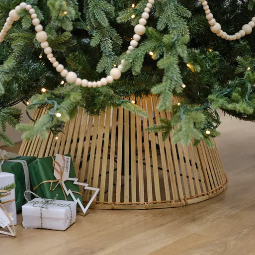 Add the perfect finishing touch to your Christmas tree decorations with this re-usablebamboo tree skirt. This Scandi-inspired Christmas tree skirt will cover the base of your tree, it's perfect for keeping things neat and tidy by disguising those wires and creating an aesthetically pleasing finish.