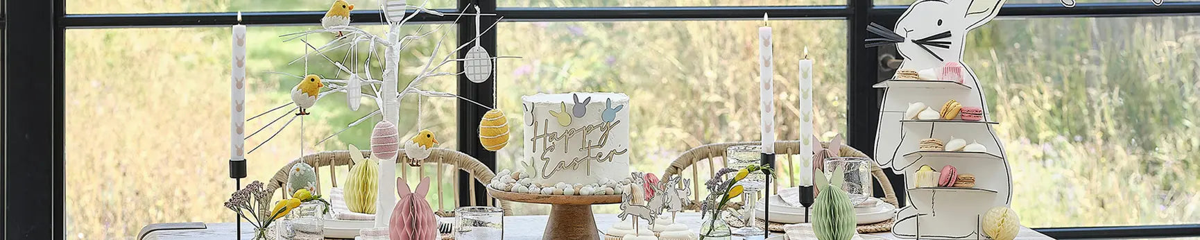 Get ready for Easter Sunday lunch with the perfect table setting. We've got some gorgeous spring coloured papertablewarewhich is perfect for the occassion. Display your sweet treats on our fun bunny treat stand or decorate the cake with our sweet cake decorations.