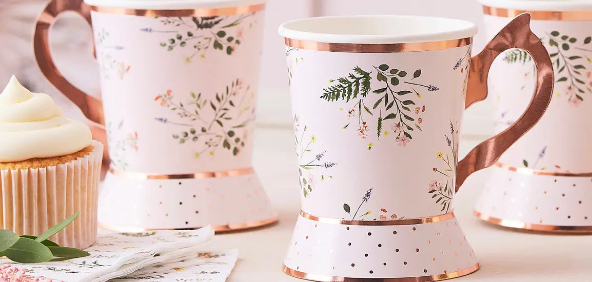 For soft drinks, paper cups are an easy way to tie into your theme and also saves on washing up! These sweetspotty paper cupsare a perfect match for a floral theme and thesepastel watercolour cupstie into a colourful theme easily. For a fun novelty addition, thesetea cup style paper cupsare perfect!