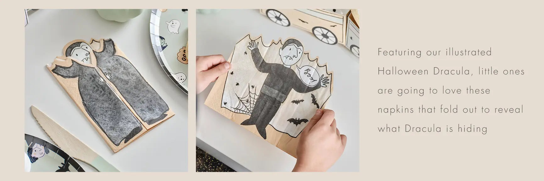 Create an elevated dinner parrty for a ghostly gathering with our Deadly Soiree collection. Add a touch of chic decor to your spooky dining experience.