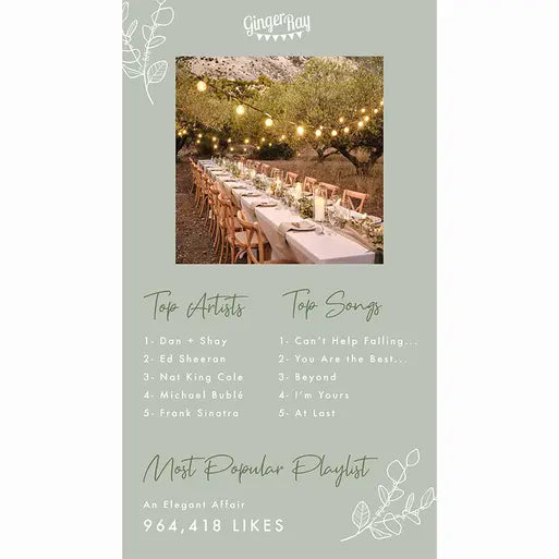 An Elegant Affair- 964,418 likesIf you were one of the 56.5k people searching for ‘Wedding Playlists’ for your wedding last year, you weren’t alone. Couples are looking to cut costs by taking entertainment into their own hands, so creating your very own collection of songs or choosing a ready-made playlist is a great way to ensure everyone can dance the night away.