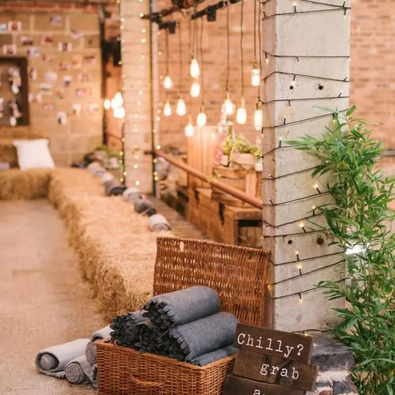 A little drizzle is no reason to quickly head indoors, especially if it’s forecasted to pass over in a few hours. We suggest bringing in a few outdoor heaters or if this isn’t possible maybe creating an area of blankets where guests can warm up. Once the dancefloor opens they won’t even notice the slight chill in the air, plus it can produce a nice rustic wedding atmosphere.
