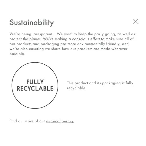 Each eco product has a sustainability tab that will break down exactly why that product is eco. For example, a lot of our confetti balloons are biodegradable, some of our products are fully recyclable and other products are reusable. You'll be seeing more of these bubbles around our site once our new collections go live.