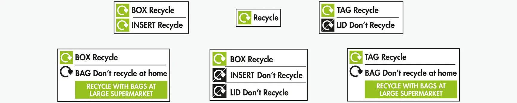 Then the reverse of our packaging shows a breakdown of exactly how to recycle each of the components.