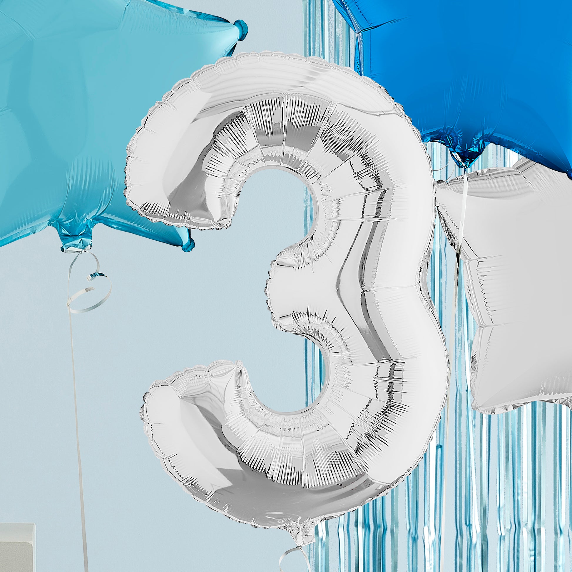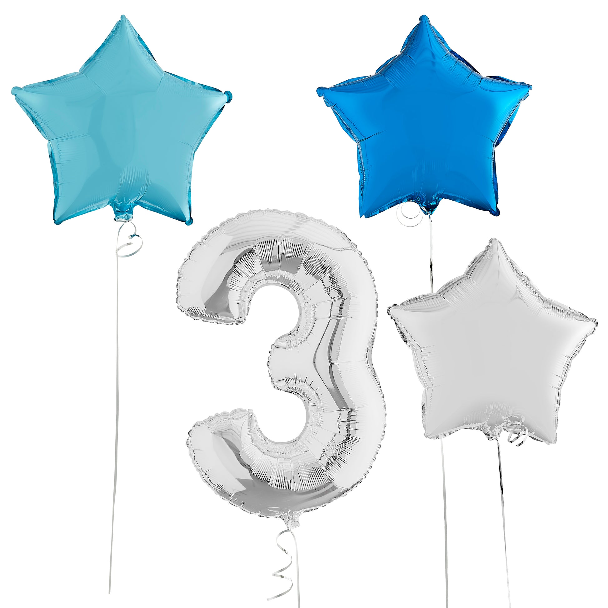 3rd Birthday Silver Helium Balloons Deluxe Bunch Delivered