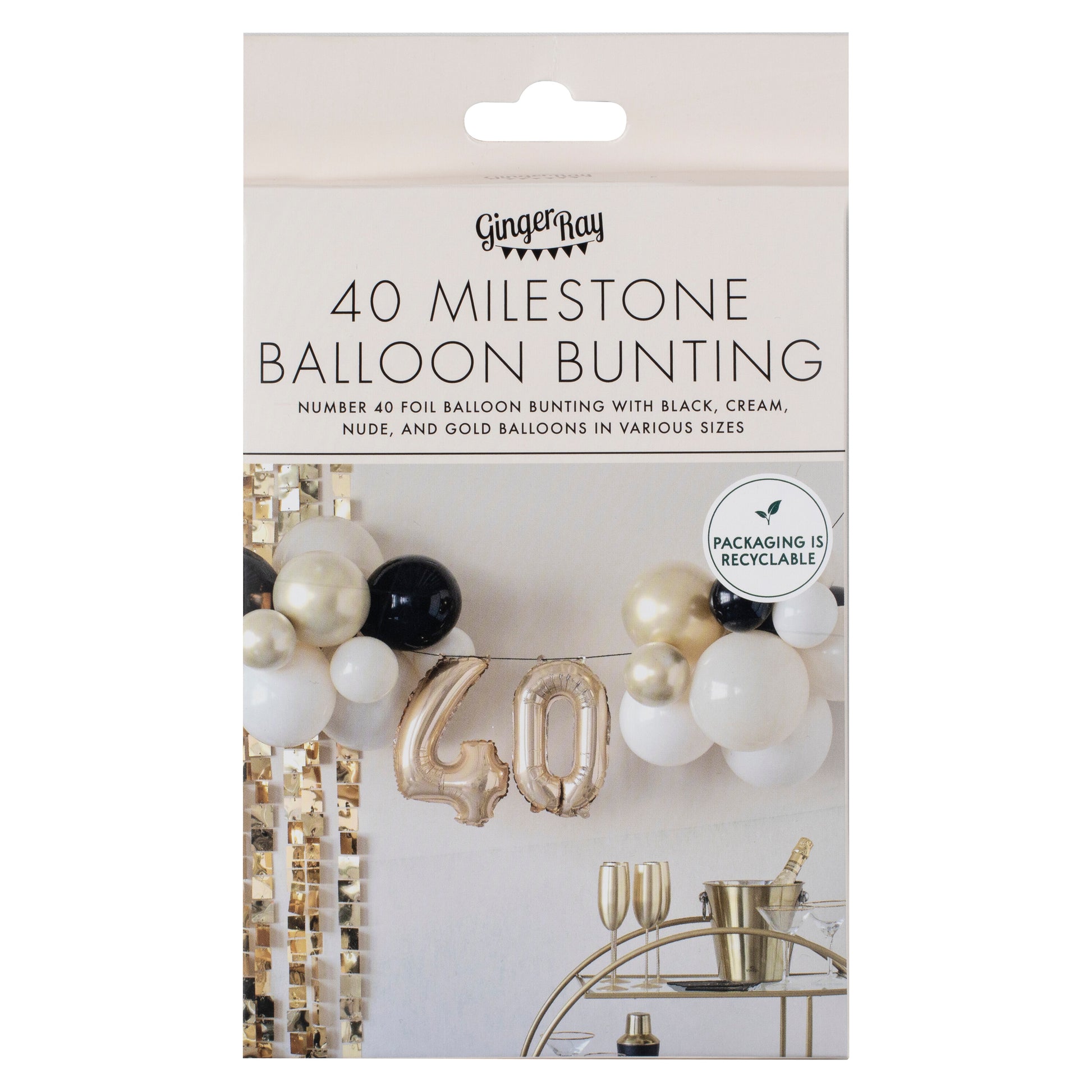 This milestone bunting has a gorgeous mix of champagne gold, black and nude balloons that will look incredible as you party the night away!