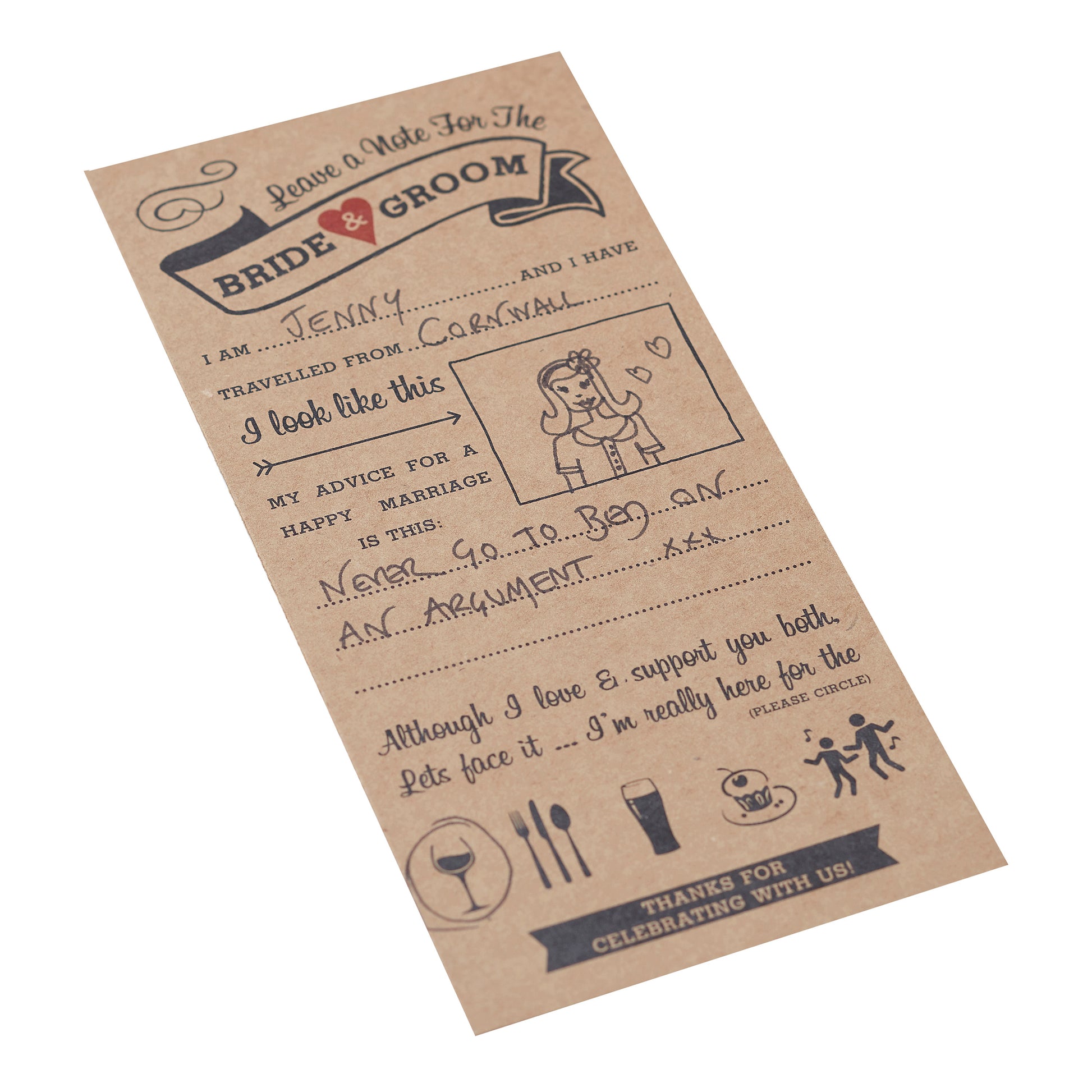 Enjoy some fun as a wedding game or treasure as a keepsake as an alternative guest book. These advice for the bride and groom cards will provide you with well wishes and helpful tips from your friends and family.