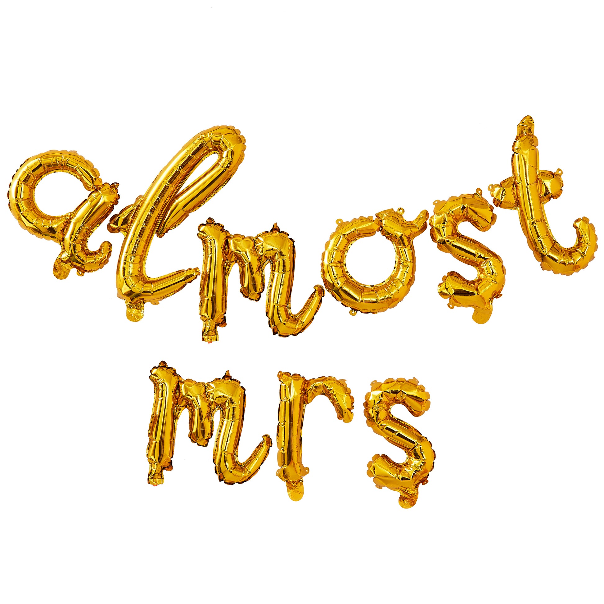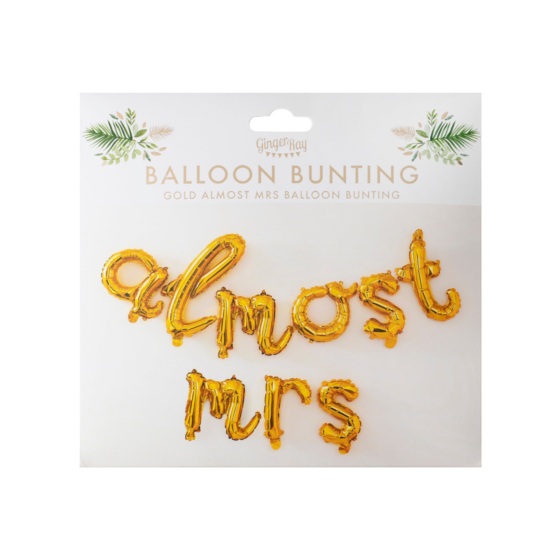 Celebrate your bridal shower in style with our gold foil 'Almost Mrs' balloon bunting. Needing just air to inflate these balloons can be strung to make a striking bunting which can be used as a great photo booth backdrop.
