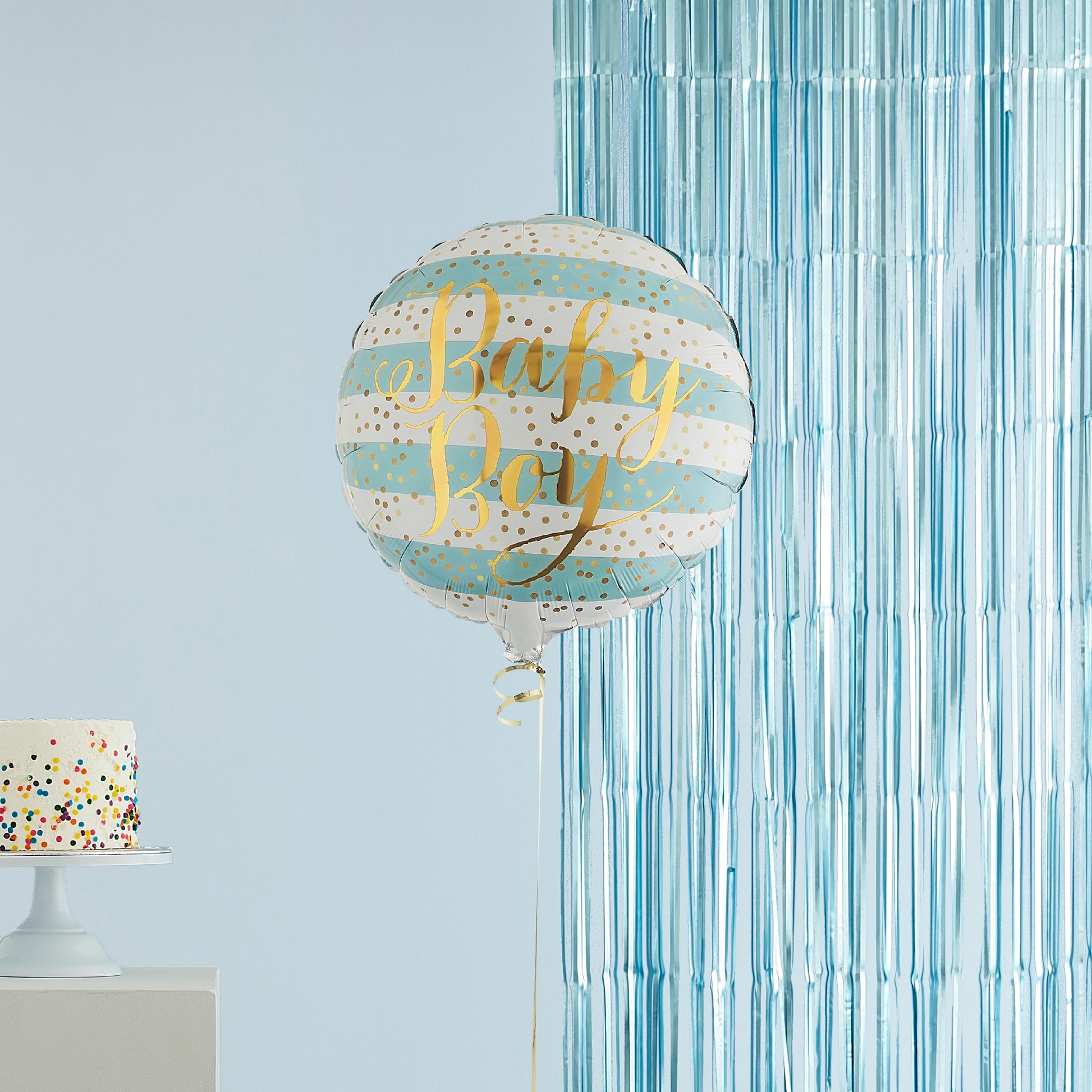 Remove the effort of having to inflate balloons yourself with our blue Baby Boy Balloon. The helium balloon delivered straight to your door is already assembled with ribbon and weights, so the receiver can simply open the box to reveal the bundle!