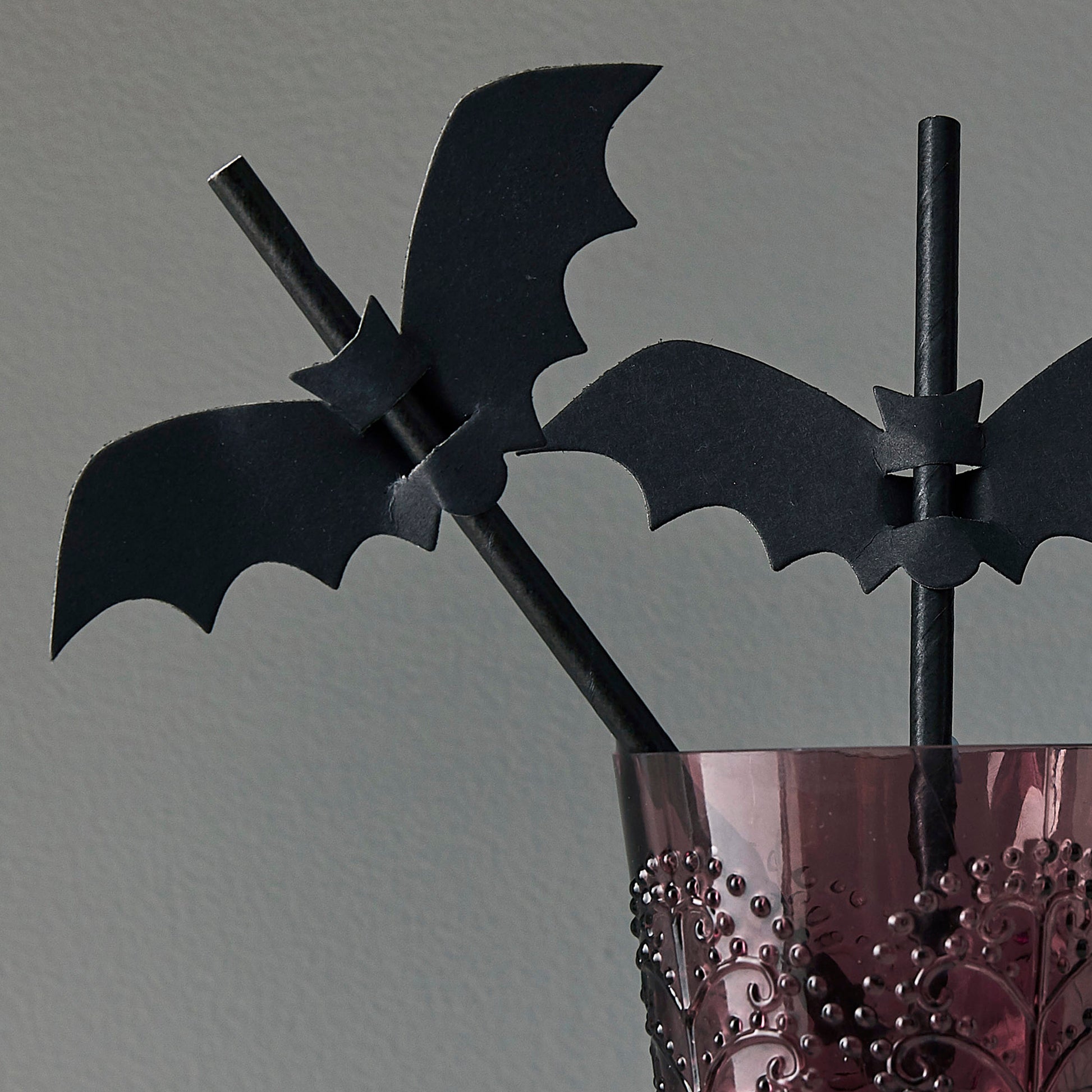 Let your guests devour devilish drinks with these creepy bat flag Halloween straws.