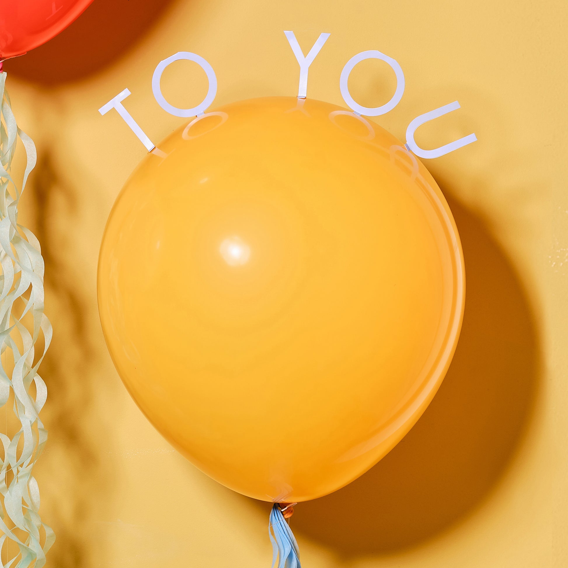 3 x 18" balloons with fun stick-on slogans and curly paper balloon tails