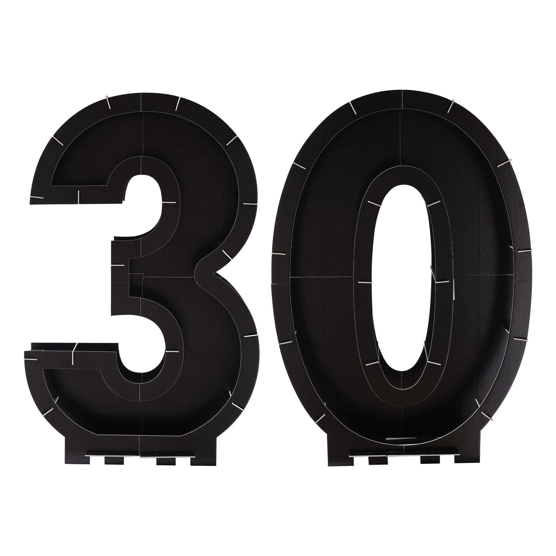 Each pack contains 1 x Balloon Number Frame: Number 3 Stand measures 81cm (H) x 53cm (W) and Number 0 Stand measures 83cm (H) x 57cm (W). Strong adhesive foam pads in 2 sizes and foam support holders included for easy assembly.