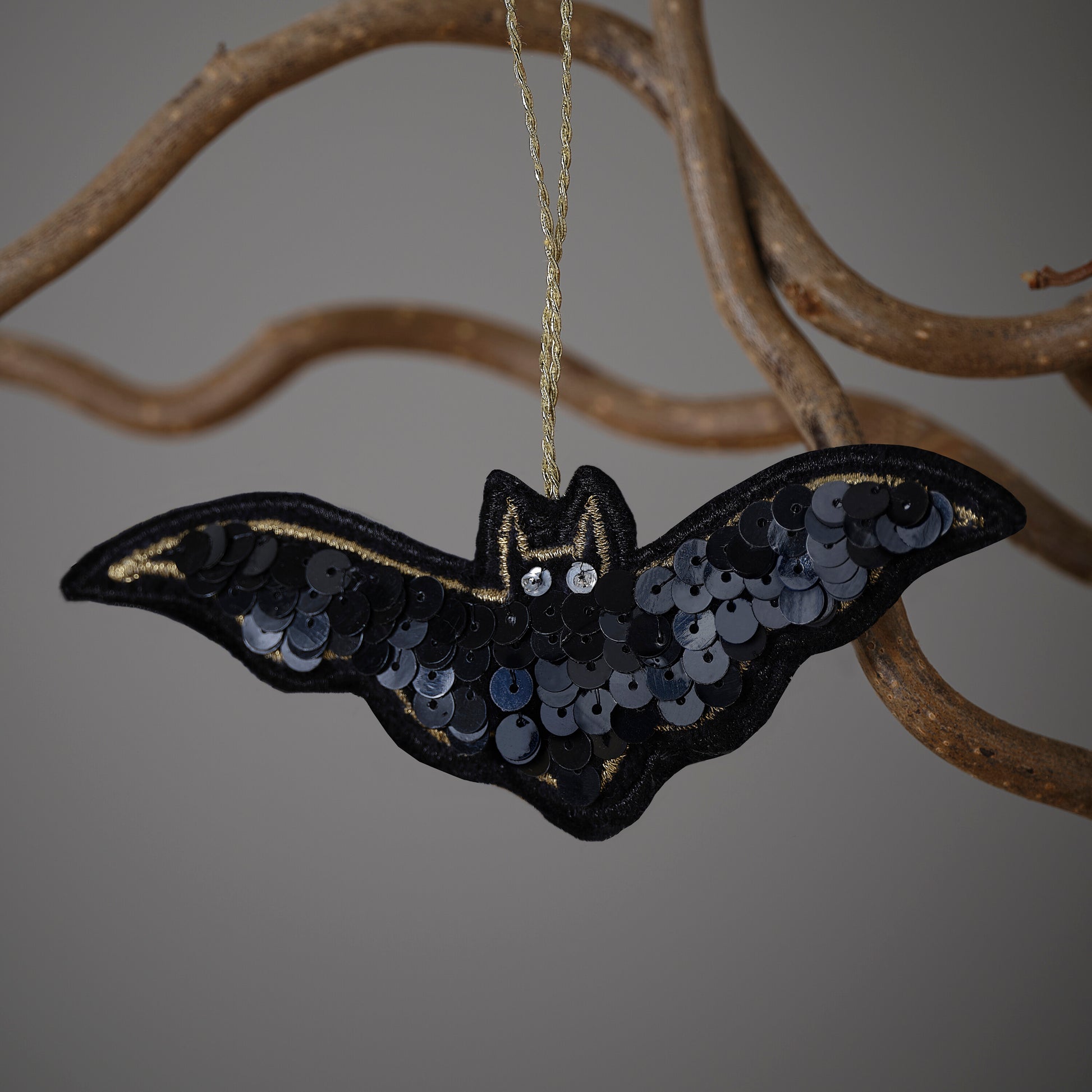 Finish off your spooky tree with this black bat embroidered Halloween tree decoration.