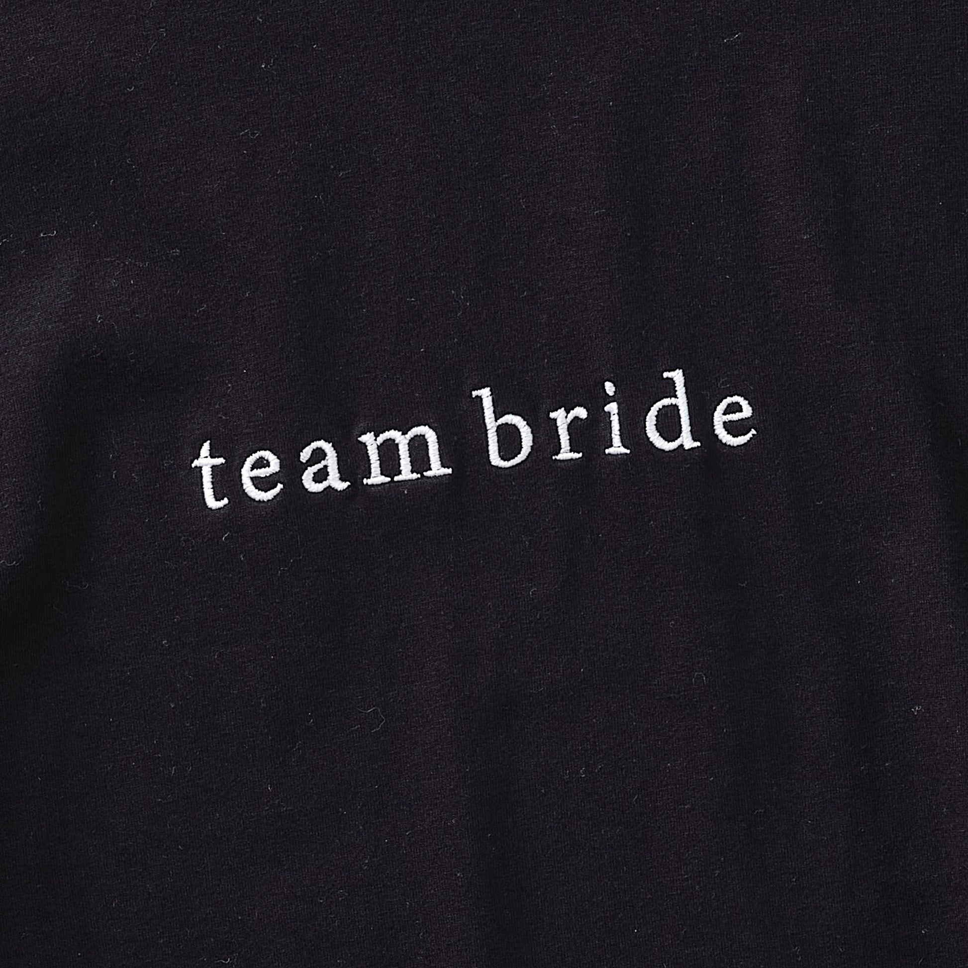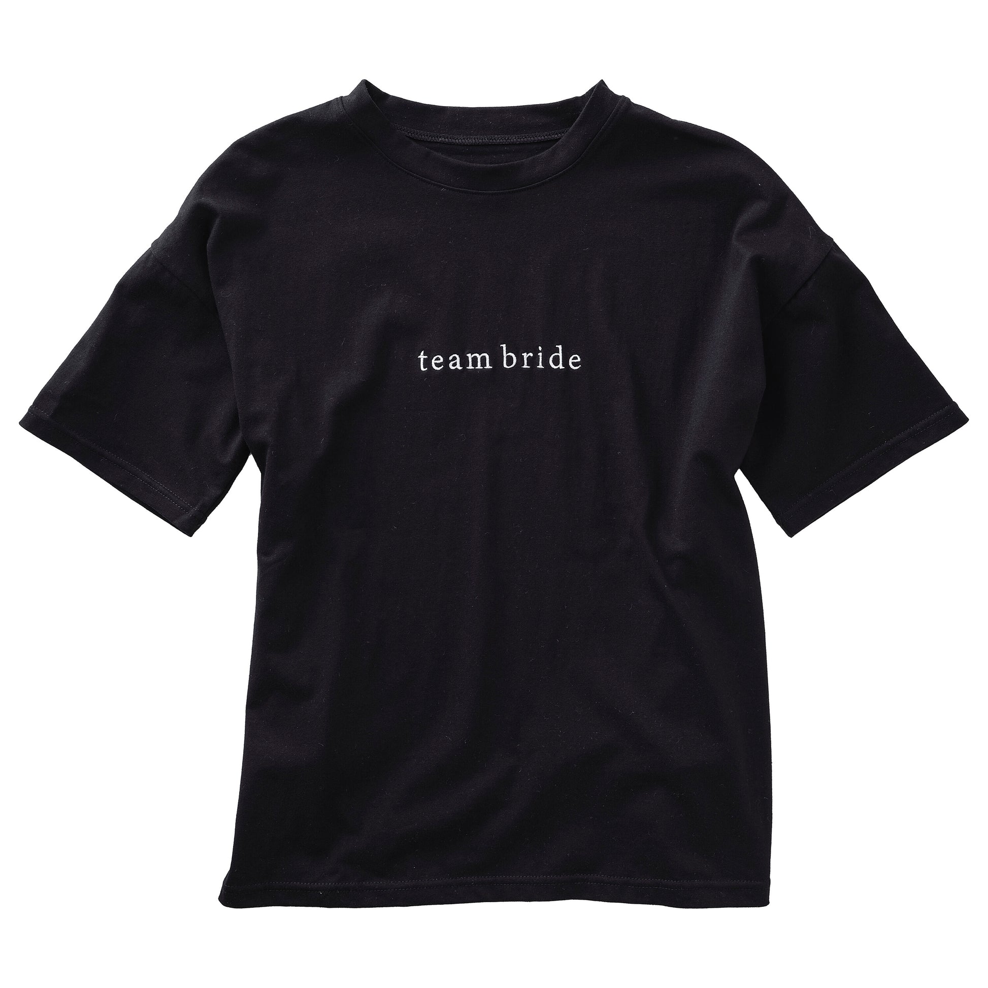 1 x Black Bride t-shirt with white embroidery detail, spelling 'team bride'