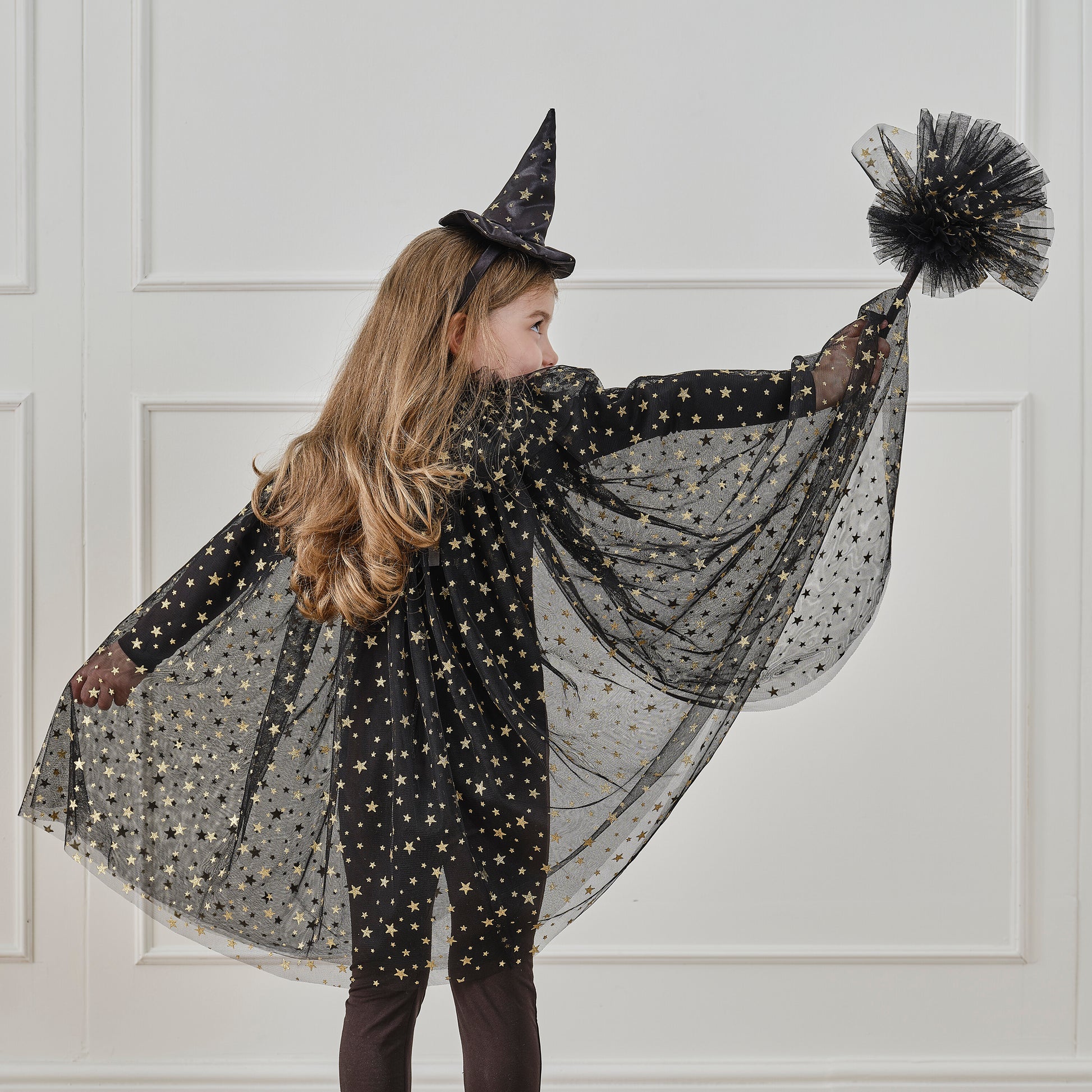 Finish off your spellbinding look with this Black & Gold Star Witch Hat Headband.