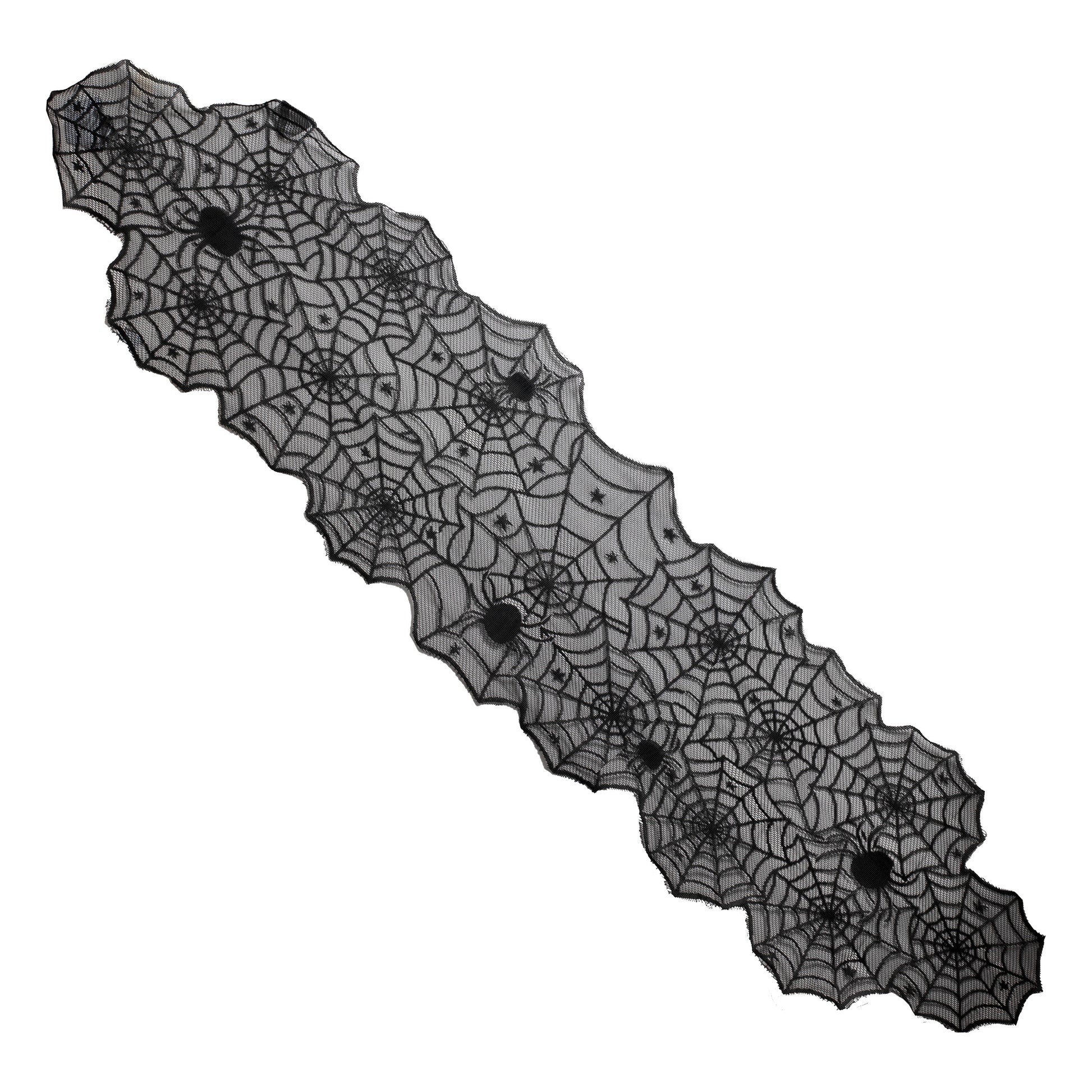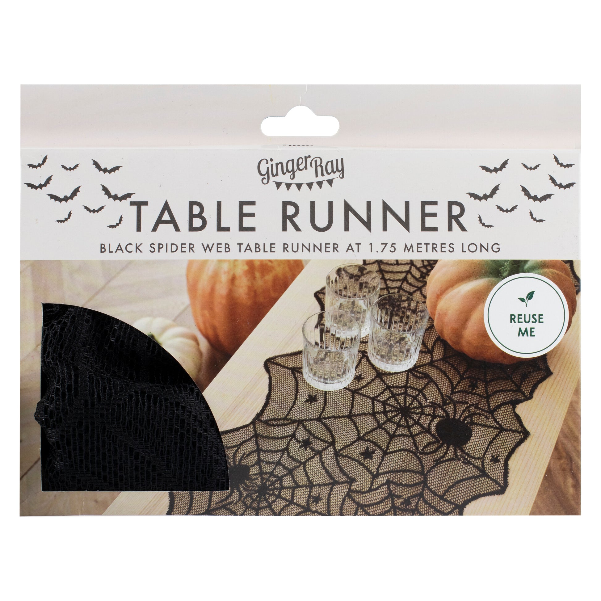 1 x Black Spider Web Halloween Table Runner measuring 40cm (W) x 175cm (H).