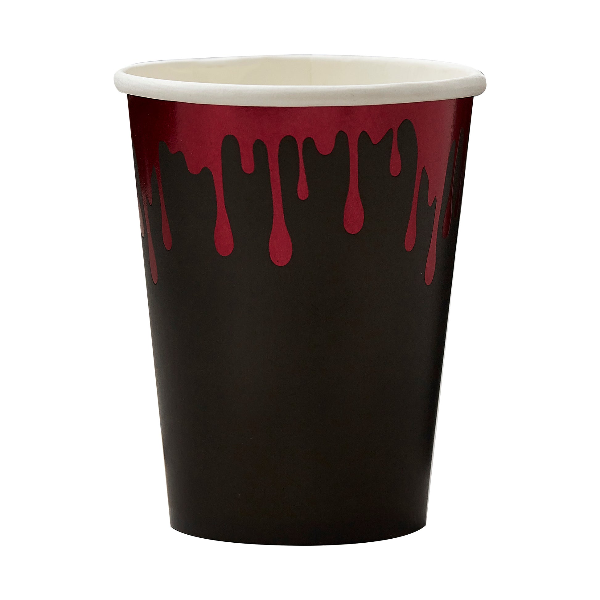 Decorate your spine-chilling Halloween party with these fun black and red Blood Drip Halloween Paper Cups - ideal for making your party table come to life!