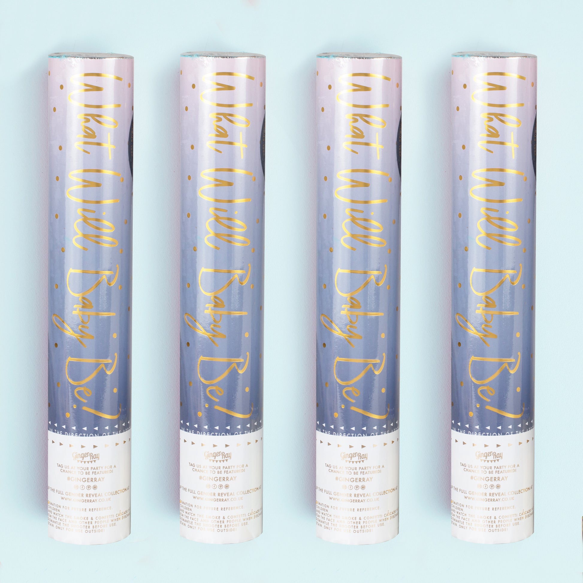 Blue Gender Reveal Smoke Cannon With Confetti - 4 Pack