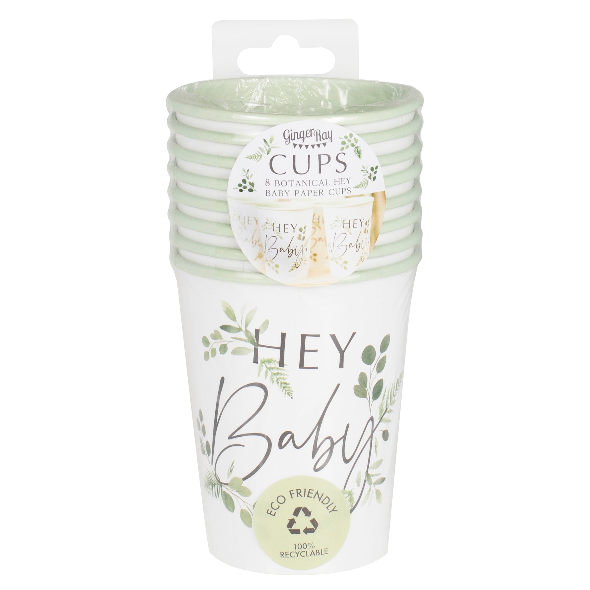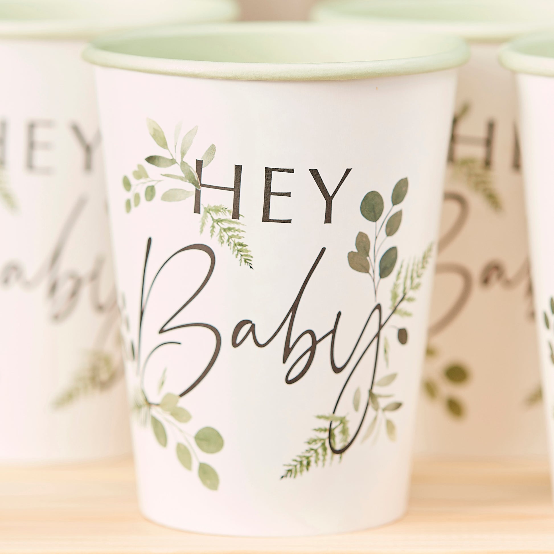 Keep it natural with our eco-friendly baby shower tableware! - these gender neutral hey baby foliage design baby shower cups will suit any theme!