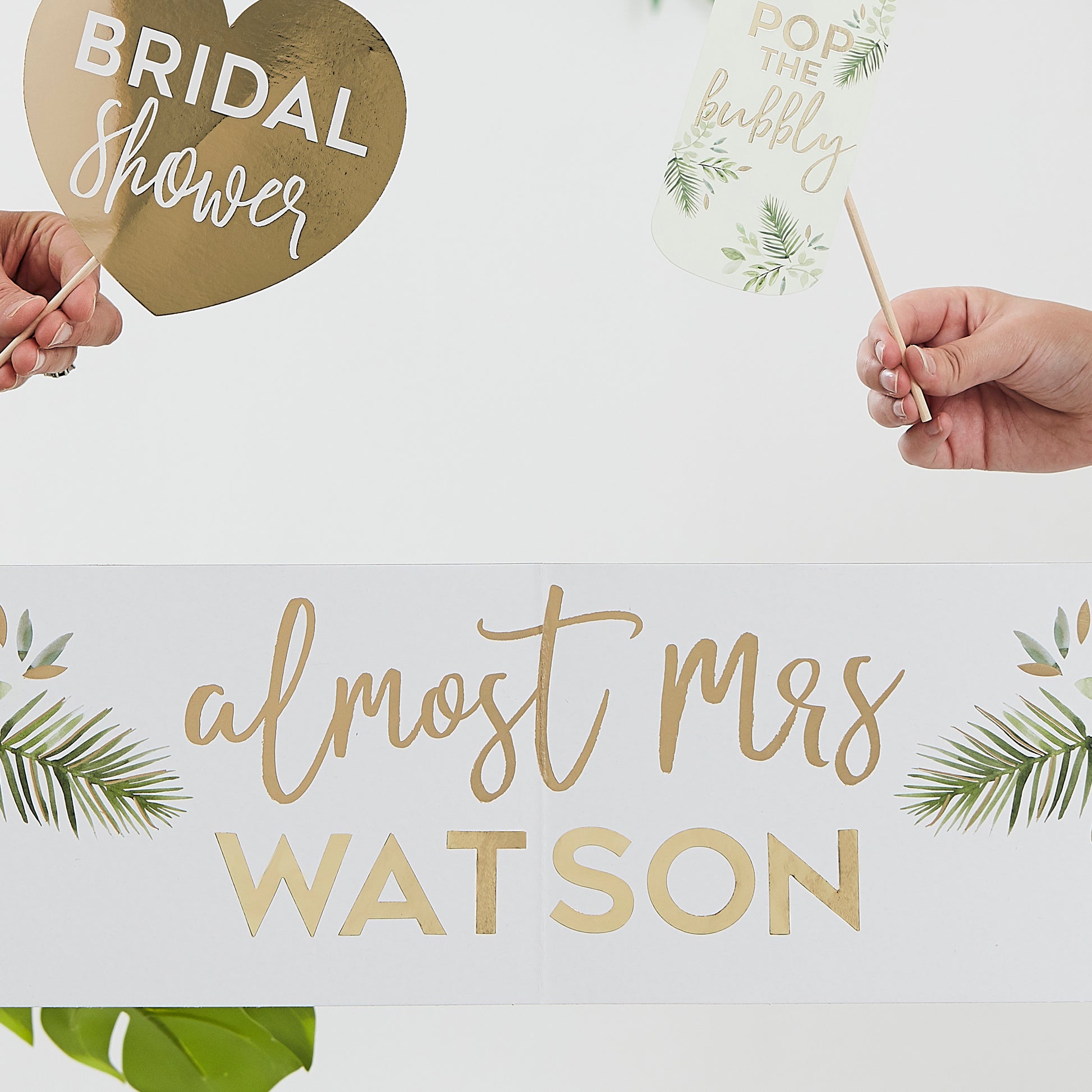 The frame is customisabe and comes with 8 gold letter sticker sheets for you to customise! Place the frame in an area with our hen party customisable photo booth props then add a hen do photo backdrop for your very own photo booth!