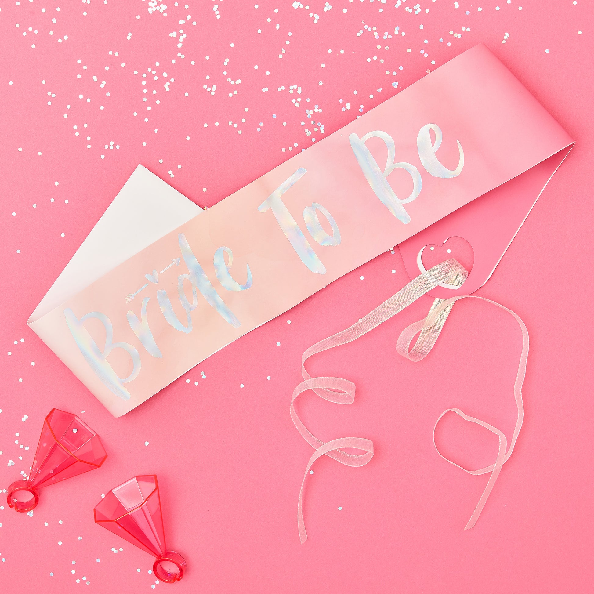Make the bride to be feel extra special with this hot pink and iridescent foiled Bride to Be sash.