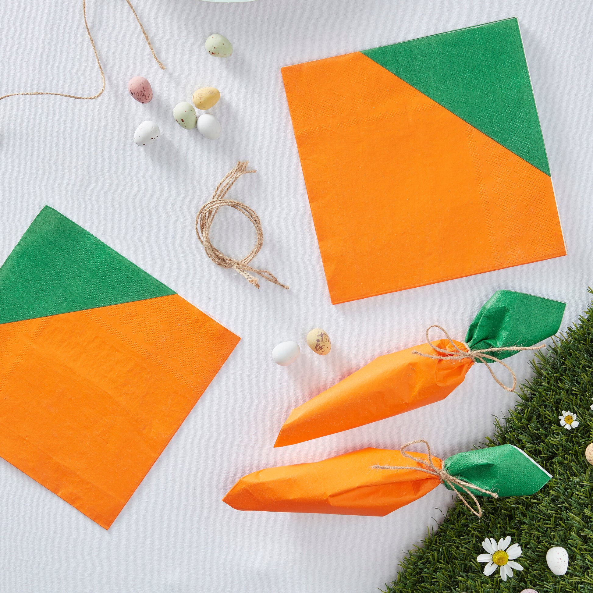 Decorate the table with these orange carrot paper napkins. Perfect for any easter table or for creating sweet carrot bundles.