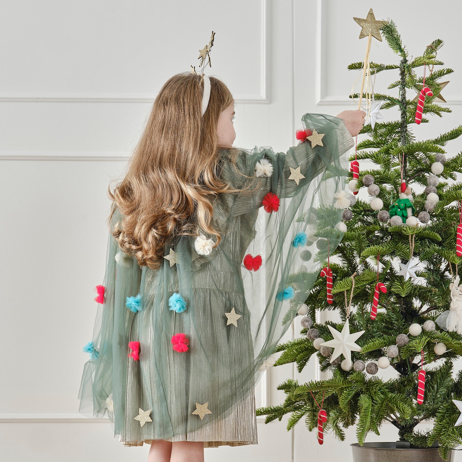 Each pack contains: 1 x Christmas tree cape, 1 x gold star wand and 1 x gold star headband to create a festive Christmas tree costume.