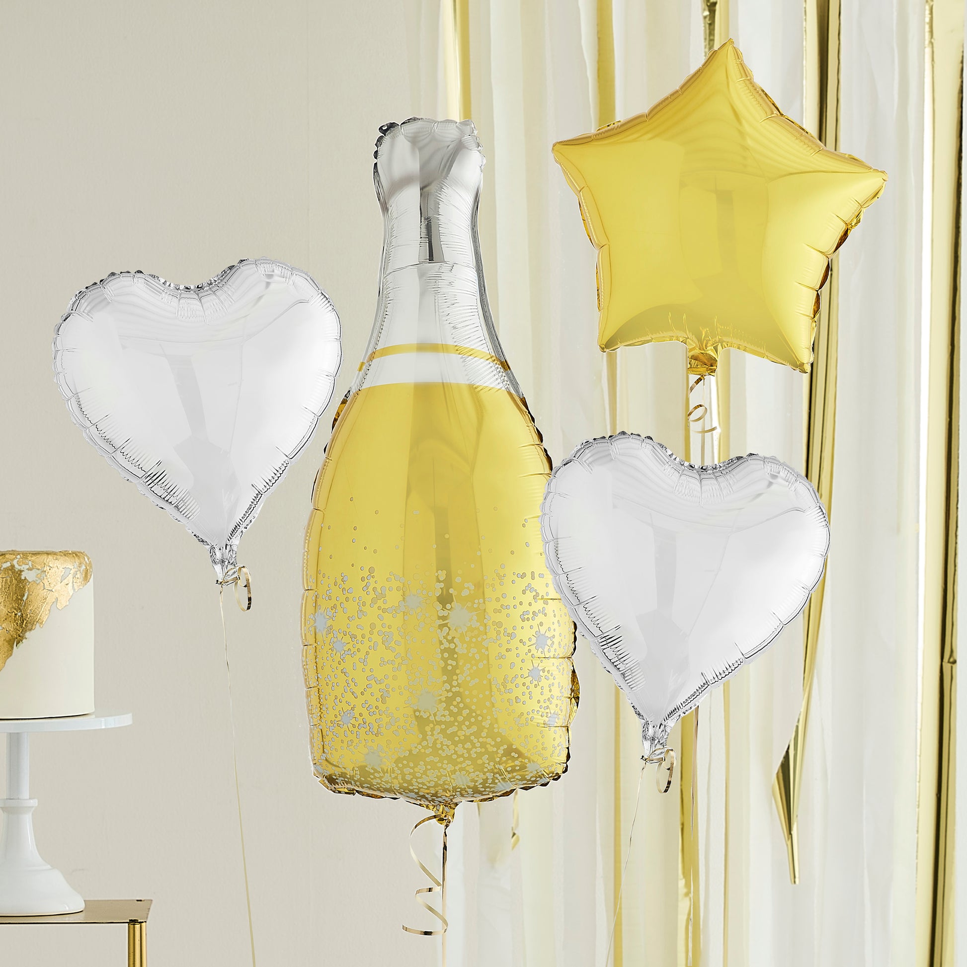 The bubbly bottle balloon is paired perfectly with the mixed metallic star and hearts to create a show-stopping gift, which can be used for any occasion - from birthdays, to engagements, to new jobs!