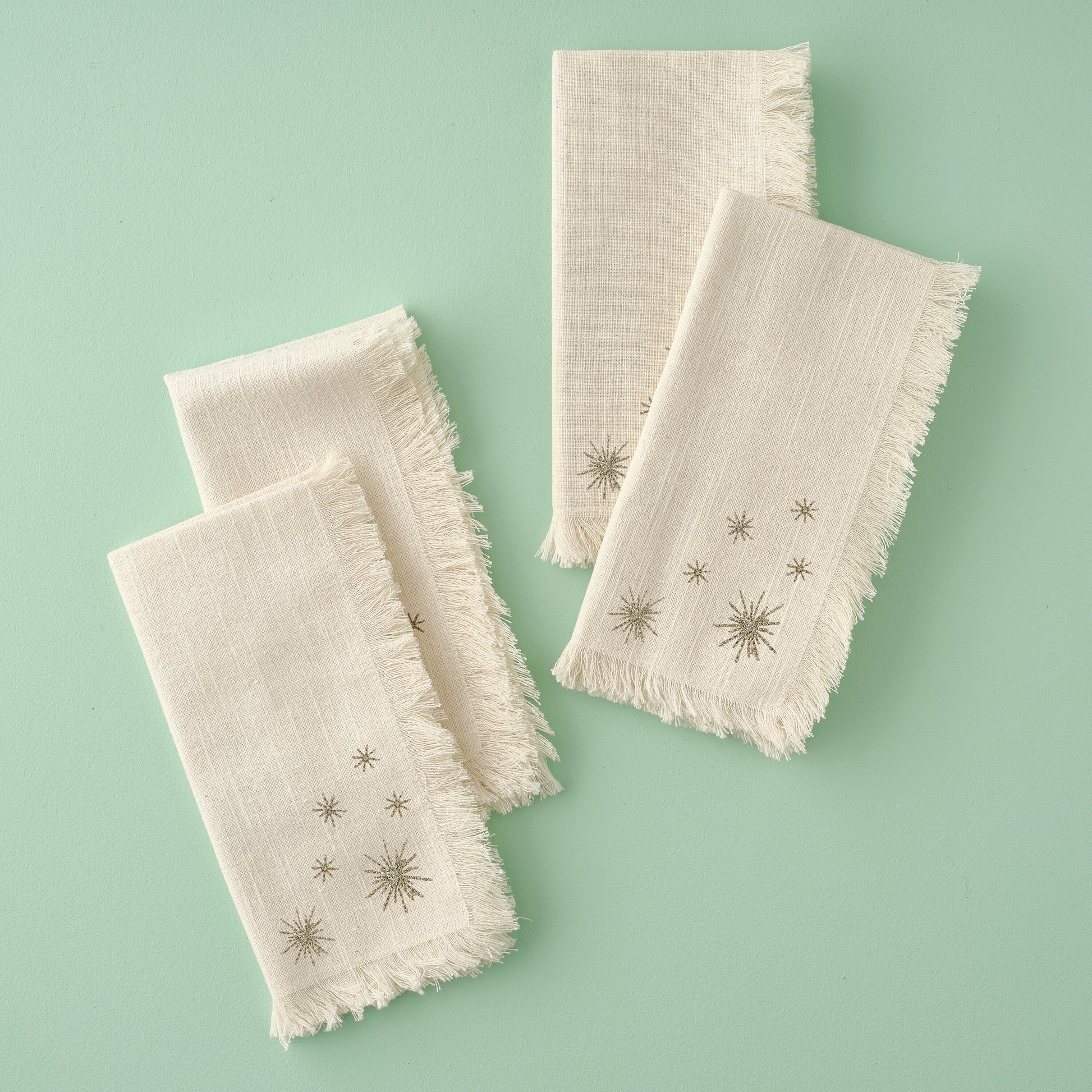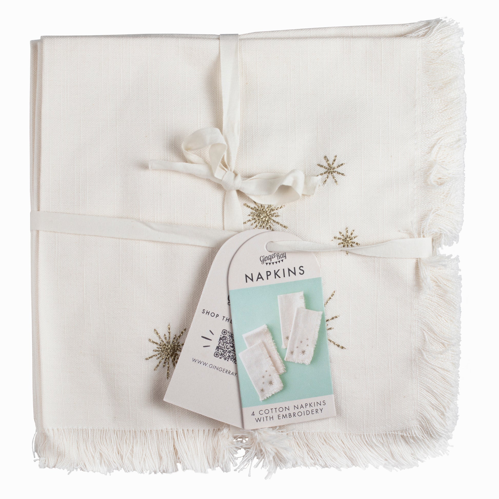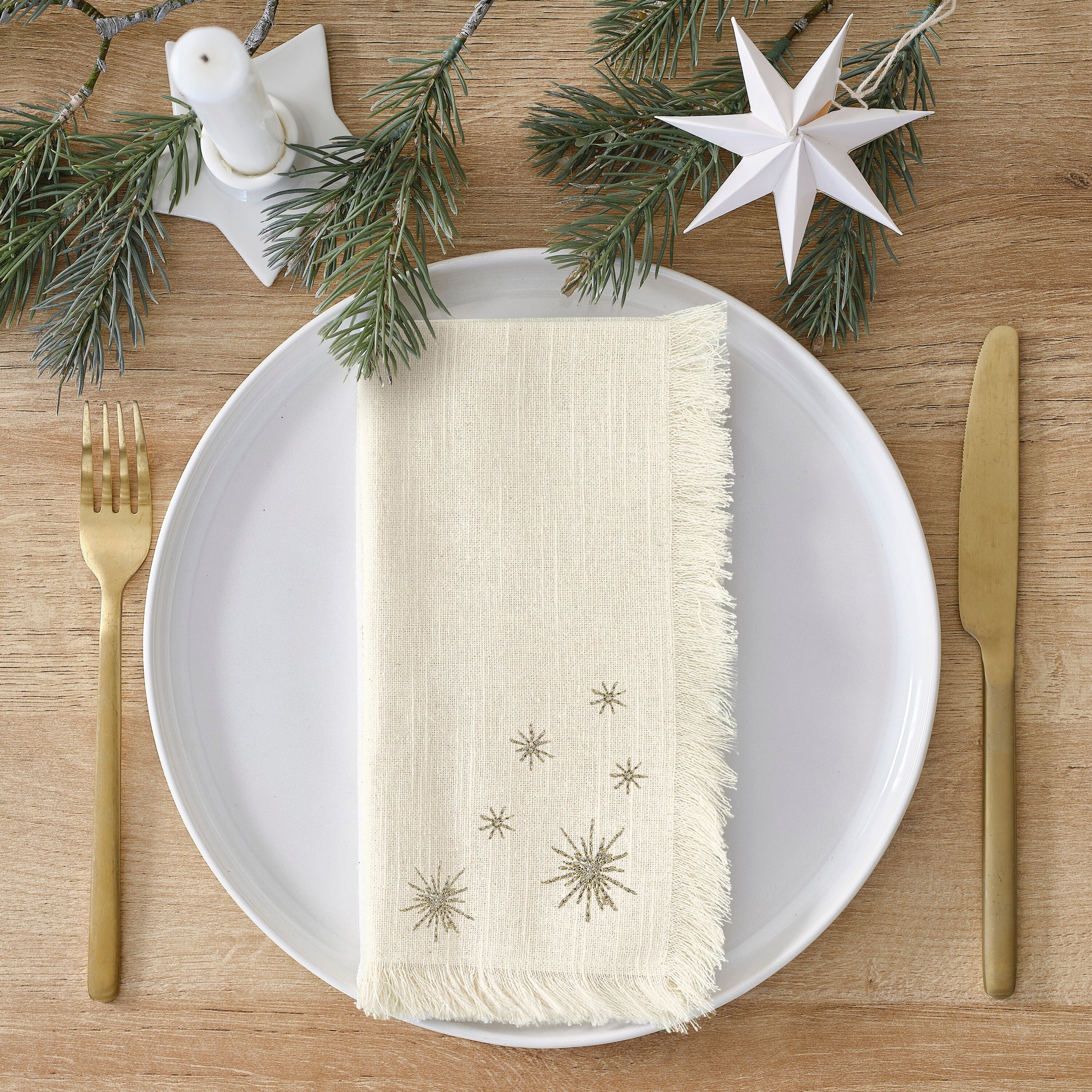 Cotton Christmas Napkins with Embroidered Gold Stars