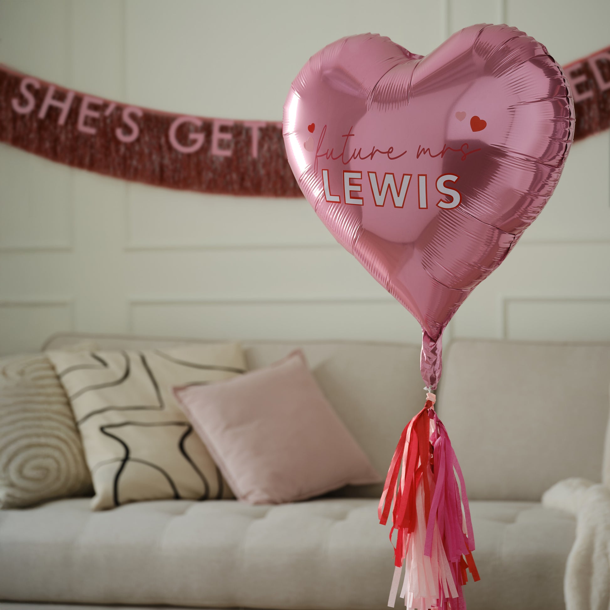 Customisable Heart 'Future Mrs' Balloon with Tassel Tail and Stickers