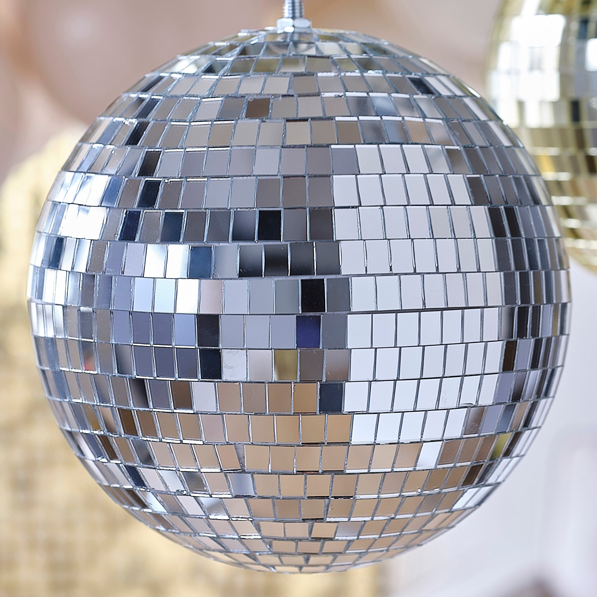 Hang a mirrorball in the perfect place to catch the light and create the perfect disco atmosphere. Watch the room fill with sparkles as you hang this disco ball, perfect to dance the night away underneath.