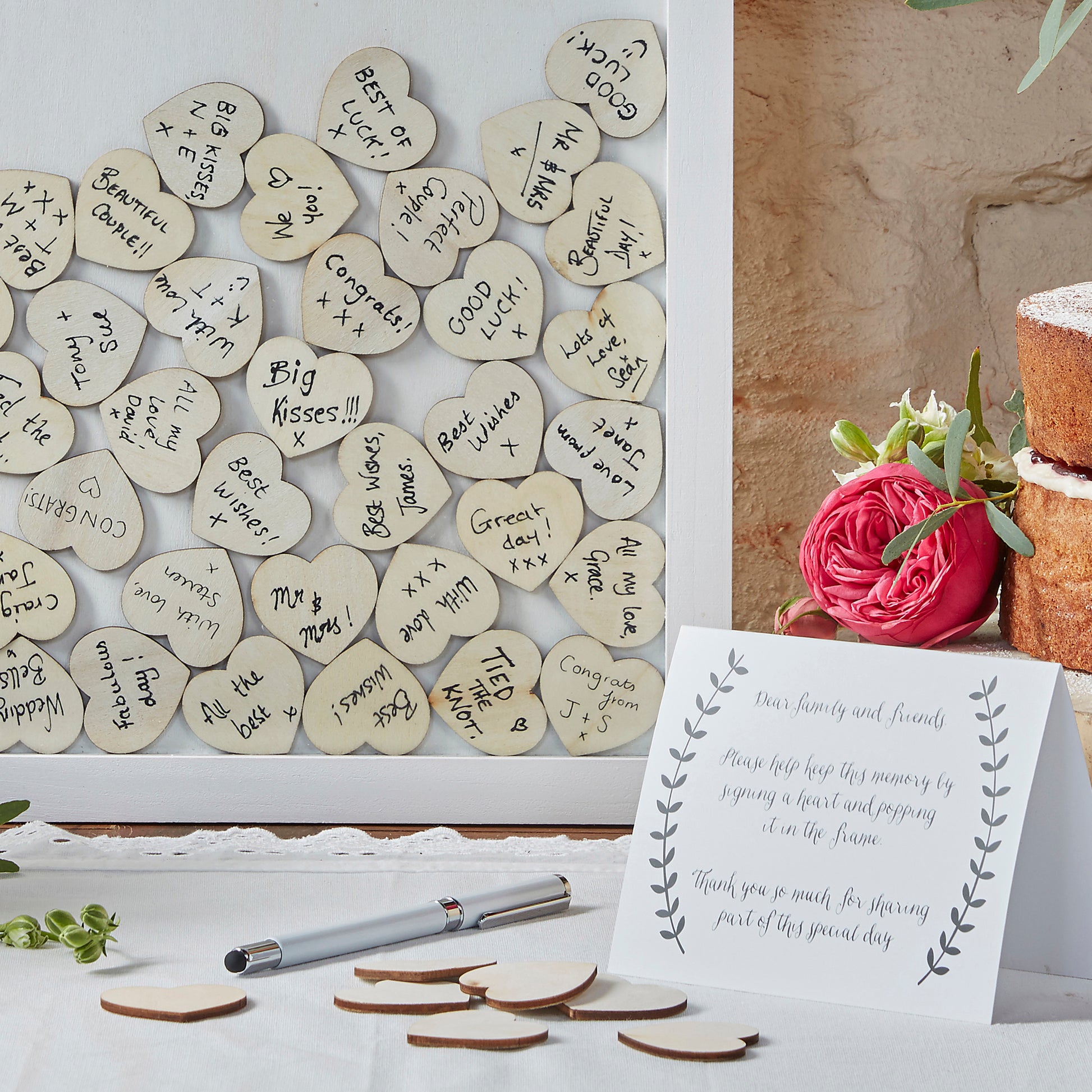 Use this gorgeous wedding guest book alternative to collect messages from all your guests! Ask your guests to write their lovely messages on the wooden heart pieces which then slot into the wedding guest book frame.