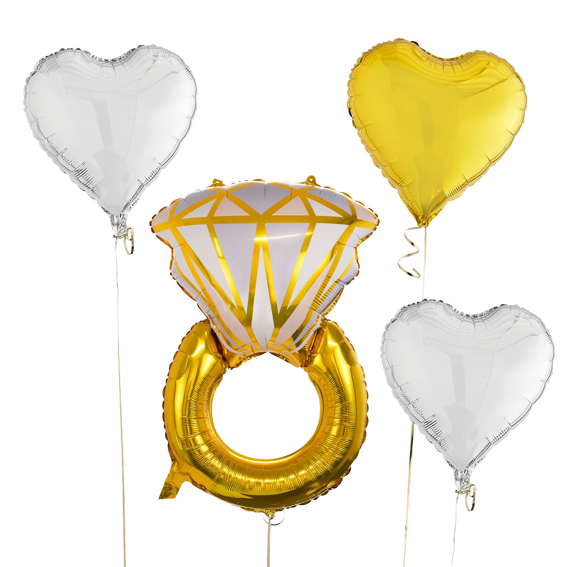 Keep the excitement going by sending a surprise delivery to the happy couple to be! The diamond ring balloon is perfectly paired with the gorgeous metallic hearts to create a gift which gives the ultimate wow-factor.