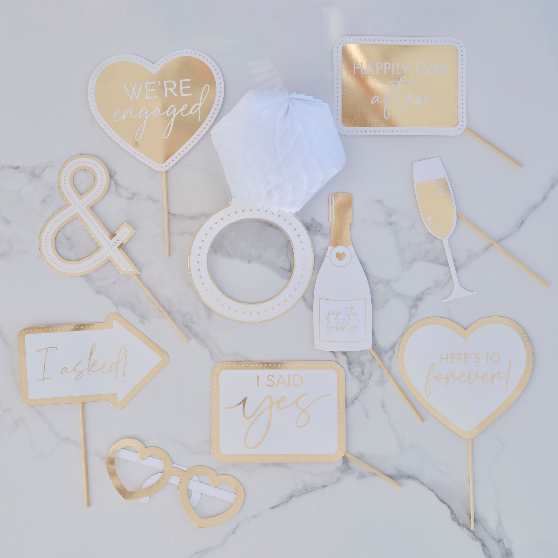 With gorgeous designs and fun engaged slogans such as ‘We’re engaged’ and ‘I said Yes’, these photo booth props are guaranteed to create memorable photos with your fiancé and your guests!