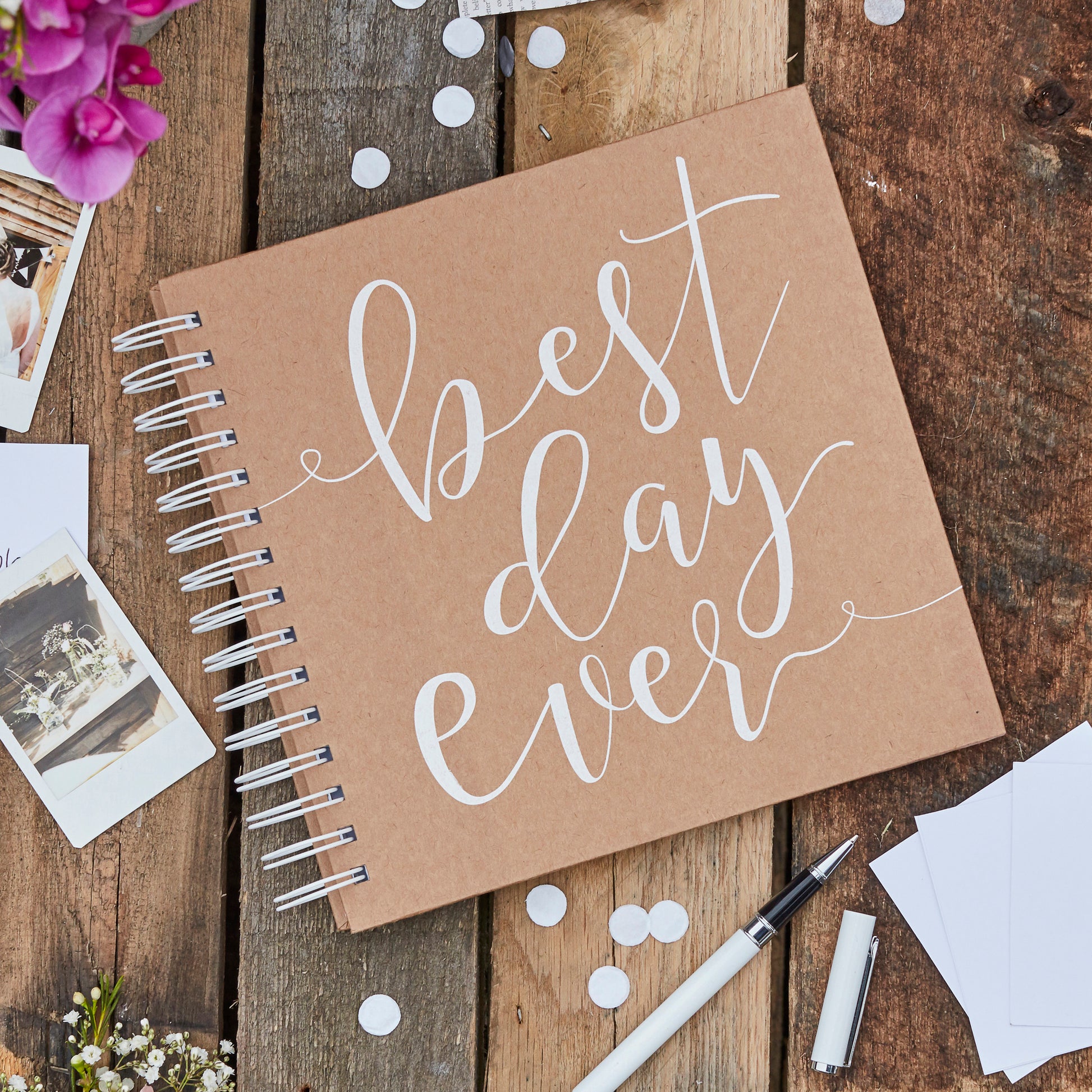 The cute envelopes are stuck into the guestbook with a card to write on. Guests will pull the card out write on it and pop it back into the guestbook. A keepsake you will treasure forever. Create a guestbook table and sprinkle our wooden love confetti and hang