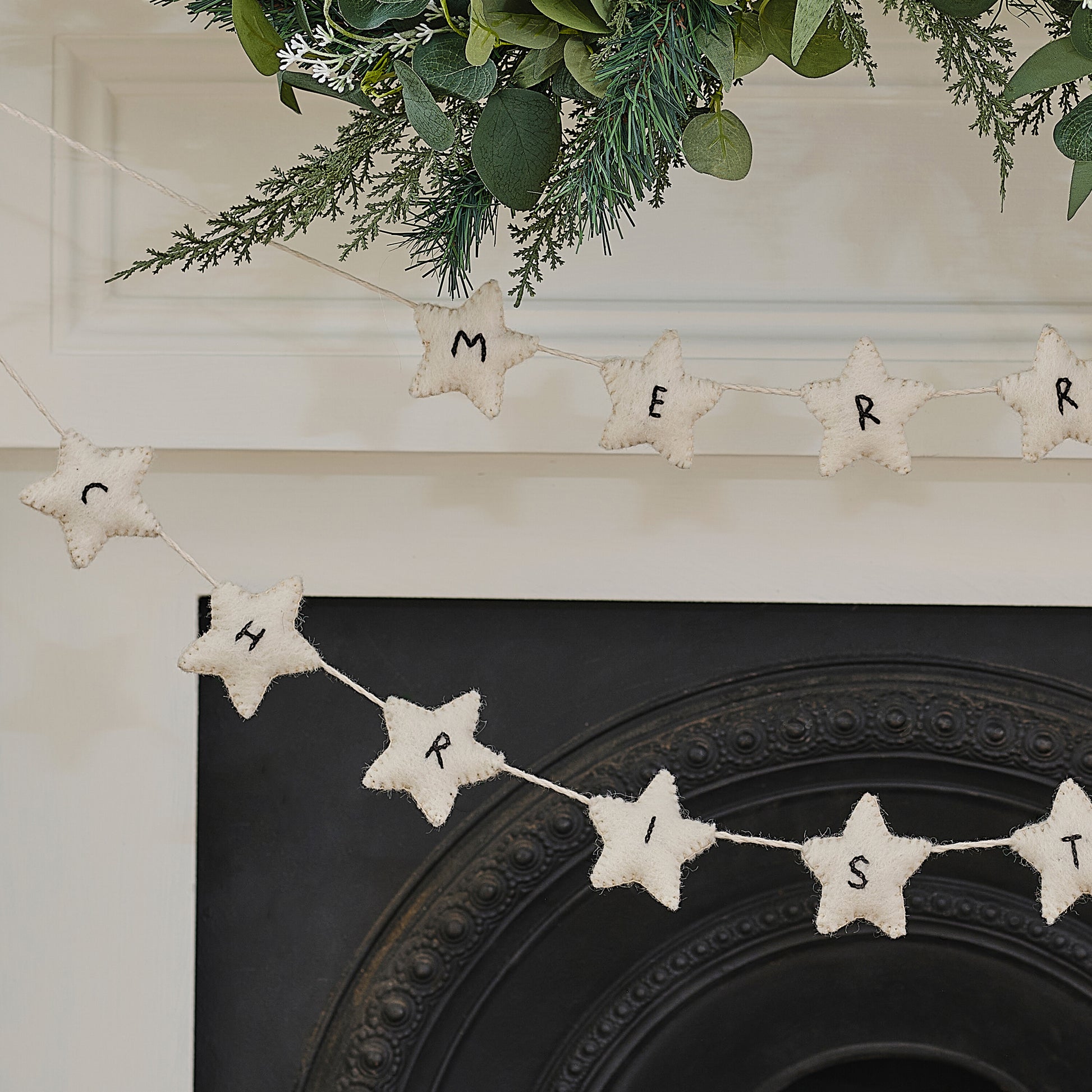 Hang cosy Christmas keepsakes in your home wth this felt star Merry Christmas bunting.