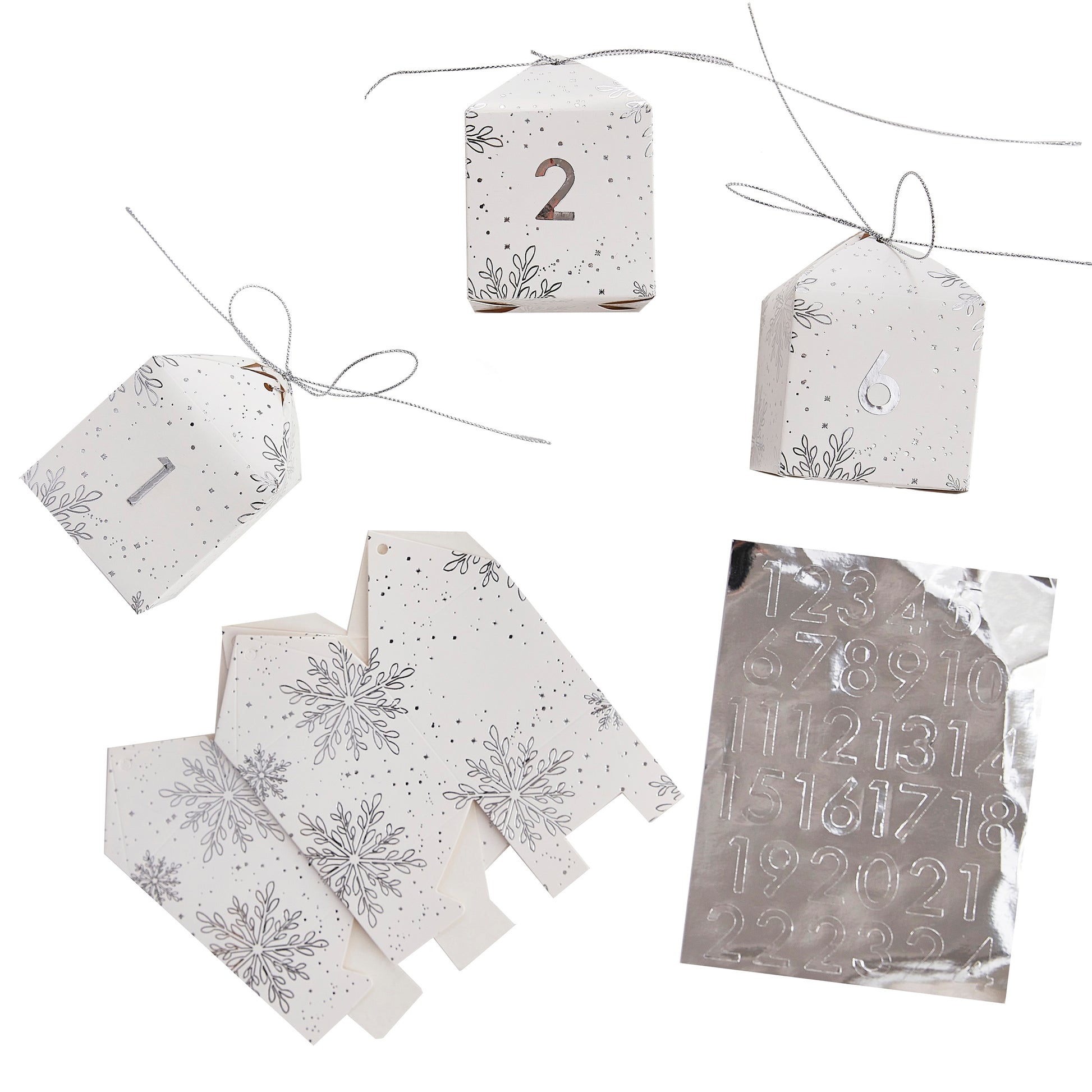 Countdown to Christmas with our silver foiled snowflake design advent boxes, simply pop up the boxes and fill with sweets and little treats for that special someone who just loves Christmas! Measuring 6cm wide by 9cm high, these little gift boxes are perfect as a stocking filler alternative.