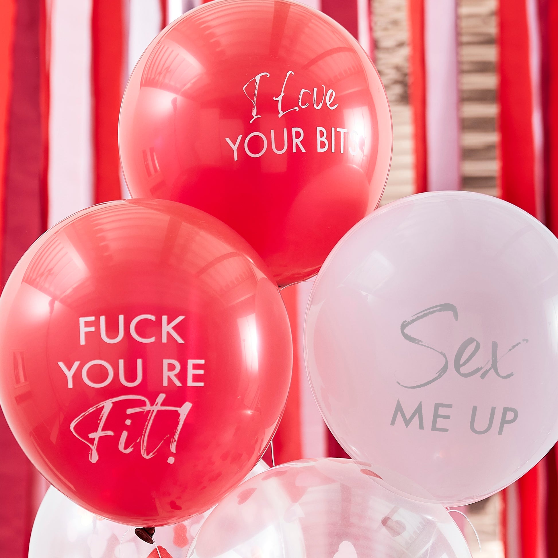 This fun filled pack of rose gold, red and light pink balloons will have your room Valentines ready in no time! With four different styles of balloon, your special someone will have great fun reading the fun and flirty messages!