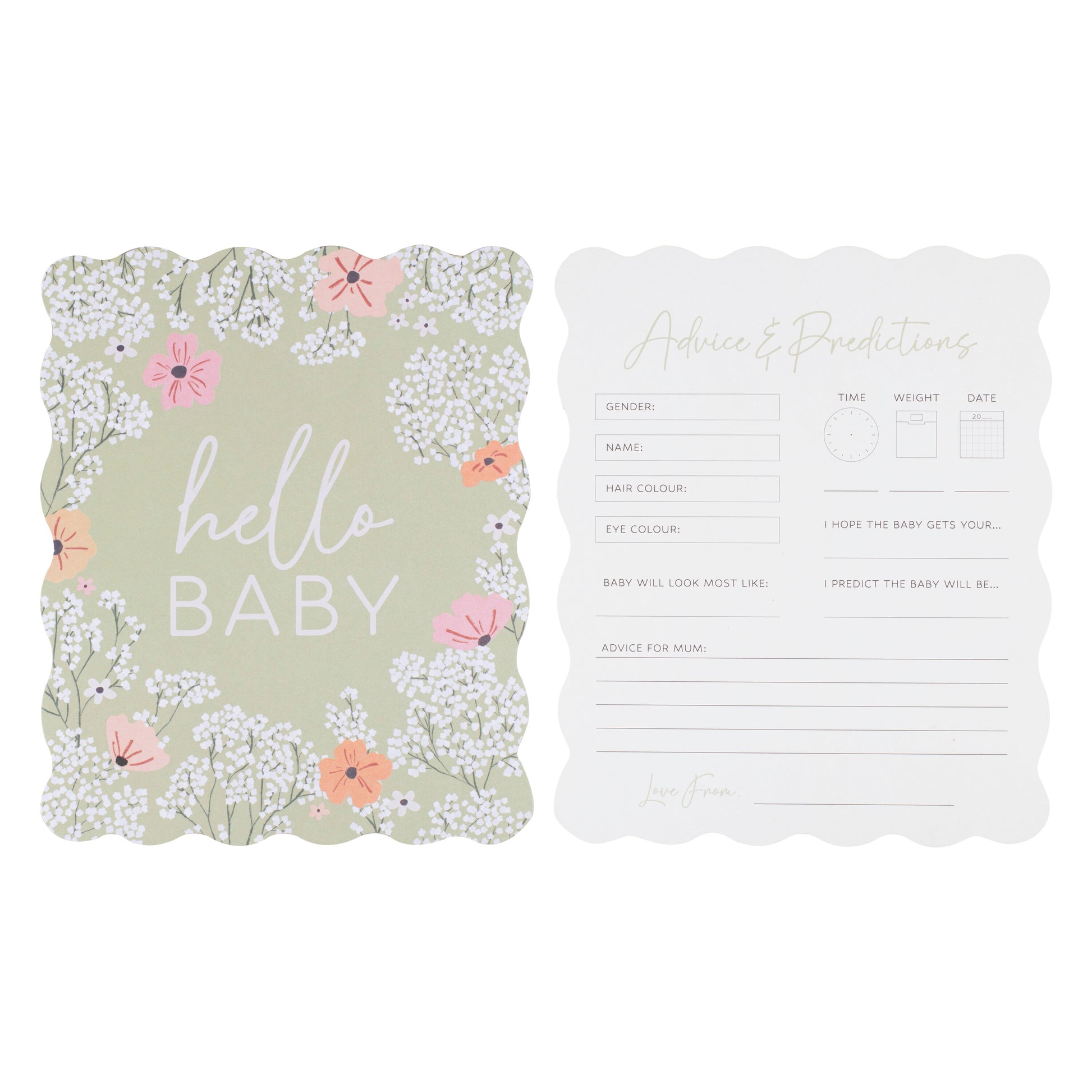 10 x floral baby shower advice and prediction cards, measuring 17cm (H) x 14cm (W)