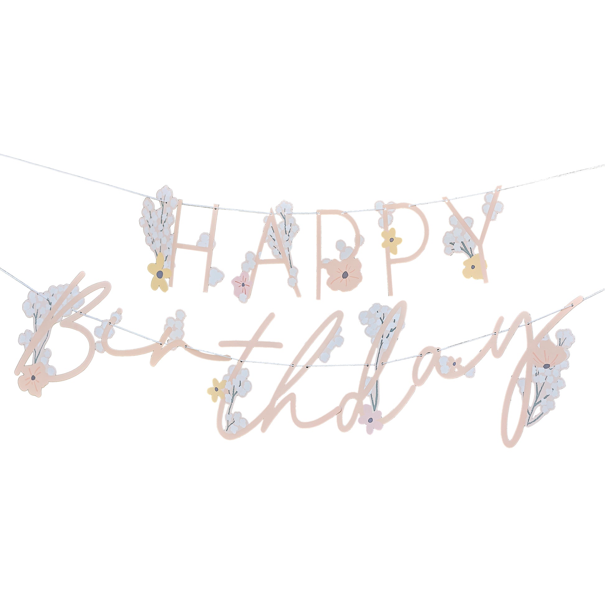 Each birthday banner consists of 2 strings of floral 'Happy Birthday' card bunting at 1.5m long.
