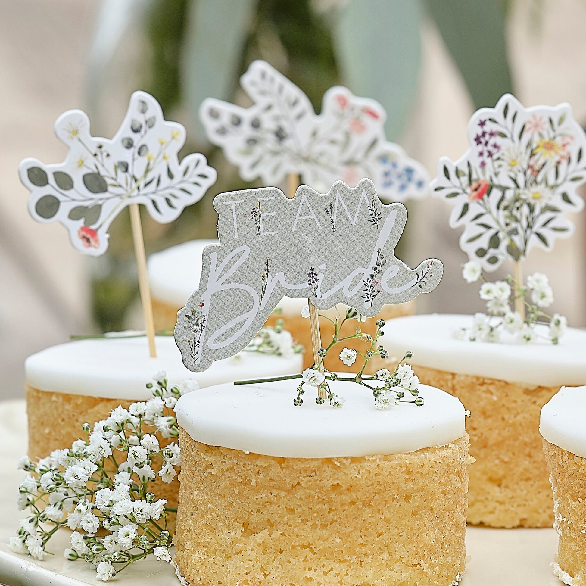 Decorate the table with some sweet cupcakes and top with these 'Team Bride' cupcake toppers.