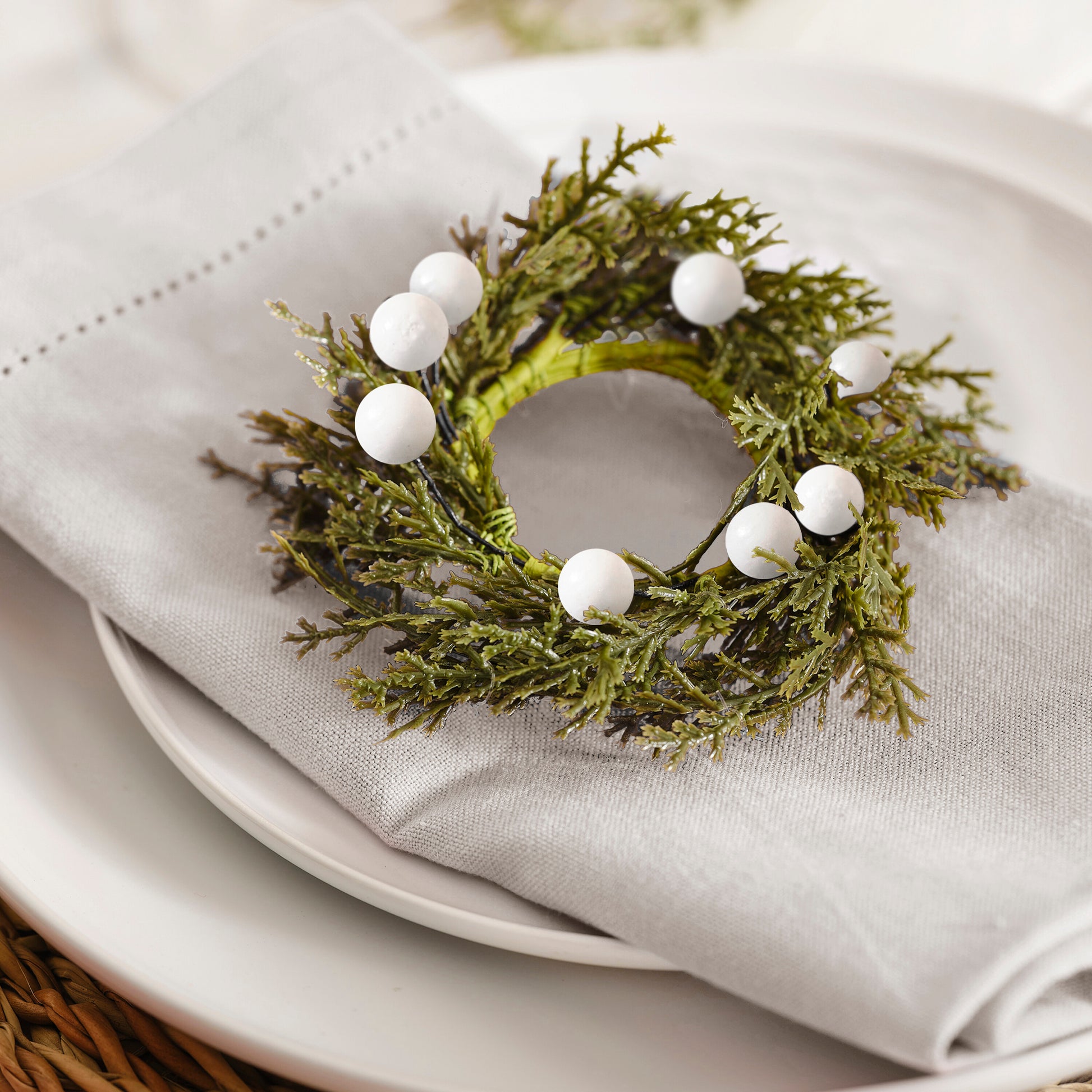 Foliage Christmas Napkin Rings with Berries
