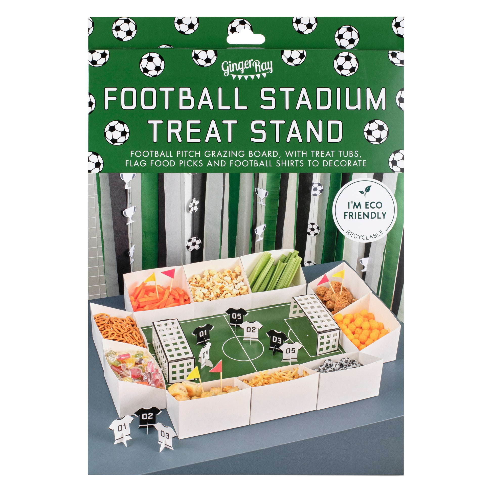 This grazing board comes complete with treat tubs, flag food picks and football shirts to decorate, so it's the perfect way to celebrate any kind of football party! Display as a focal point on your table with football party food.