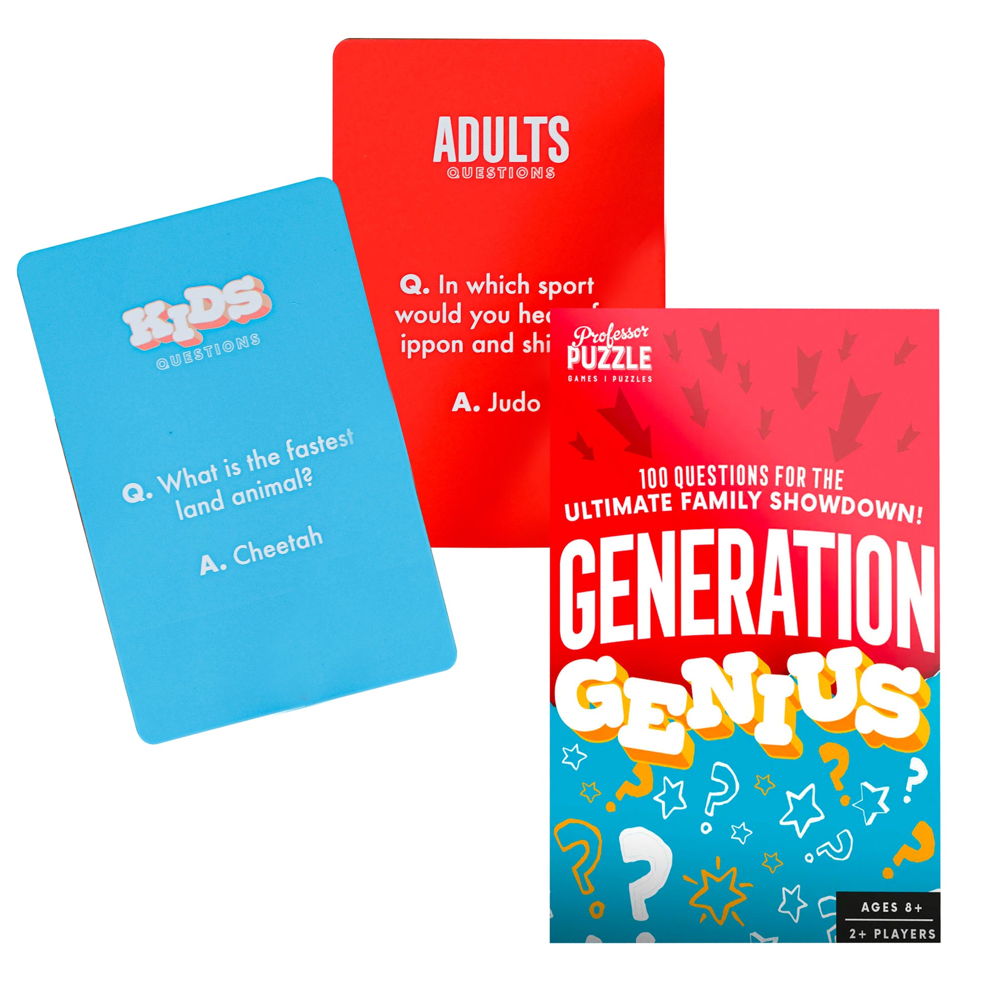Battle the generations, young and old with this set of pocket-sized Generation quiz game.