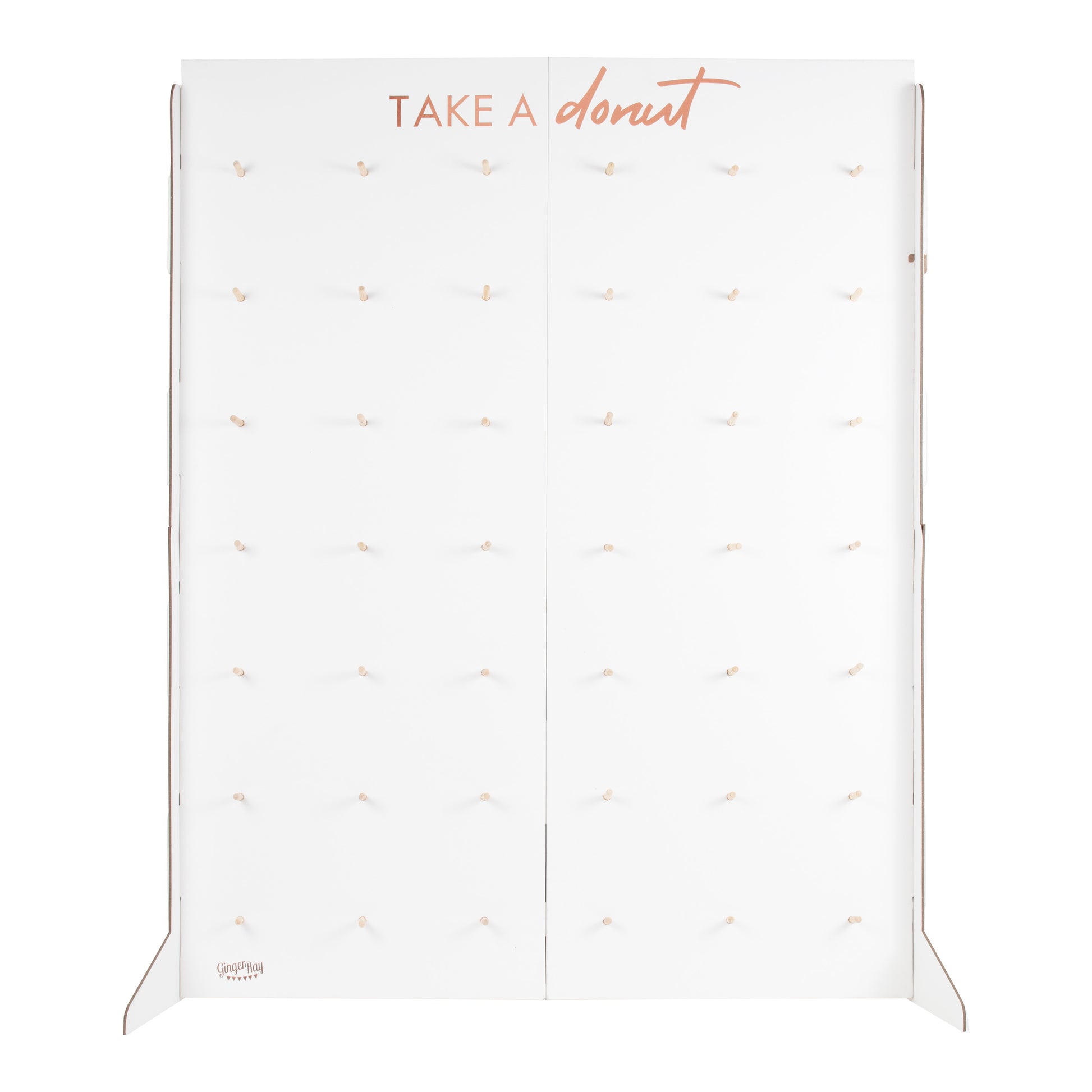 Each donut wall measures approx. 85cm H & 65cm W and holds 42 Donuts. Each pack contains 1 wall, Support side stands, Stick back support pads and 42 Dowels for your Donuts!