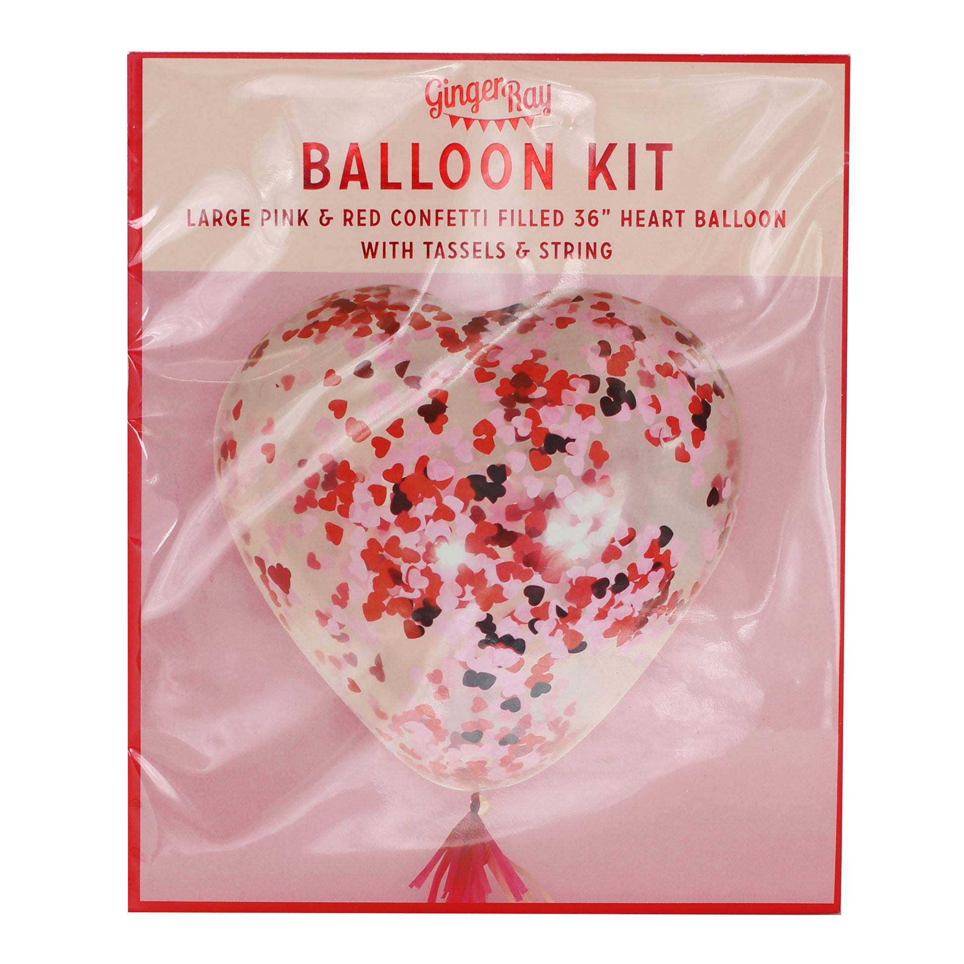 Our large heart-shaped confetti-filled Valentines balloon is sure to melt the heart of the person you love and will make a big impact at your valentines celebrations. This 36 heart shaped balloon with tassels can be filled with helium to float.