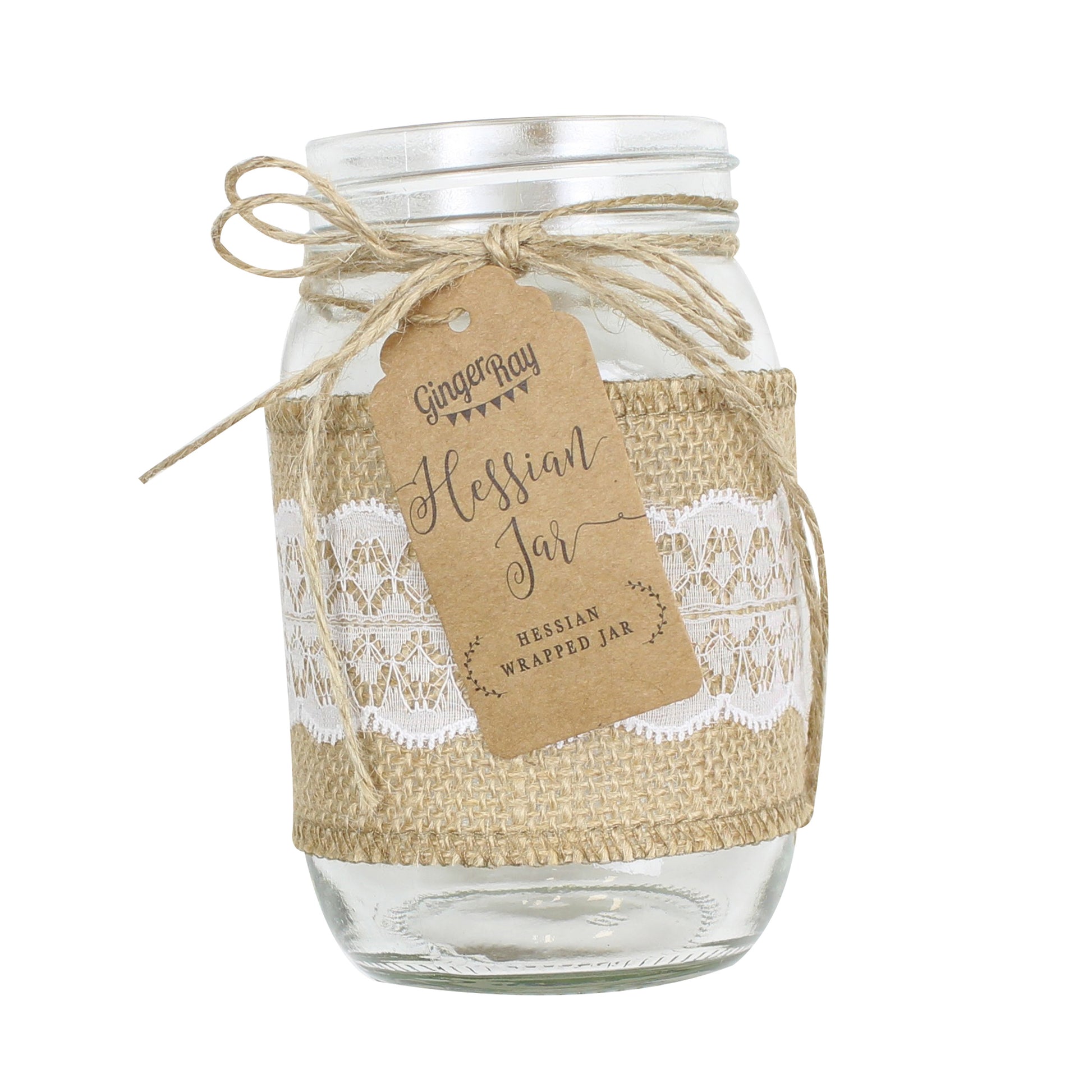 Glass Jar with Hessian Rustic Wrap