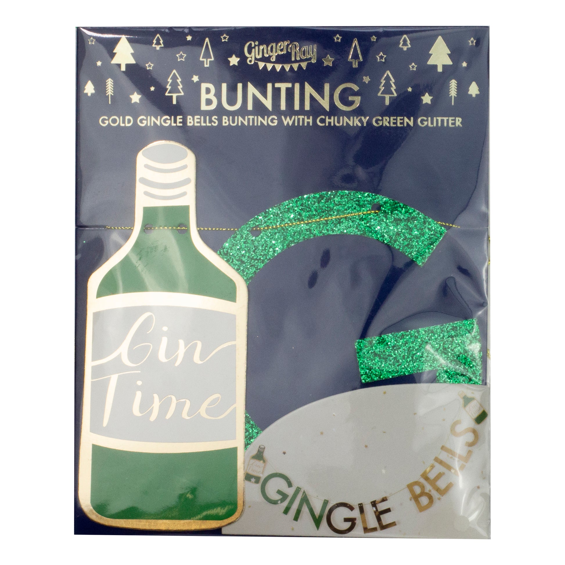 Glitter Gingle Bells Christmas Gin Party Bunting - Gold Glitter